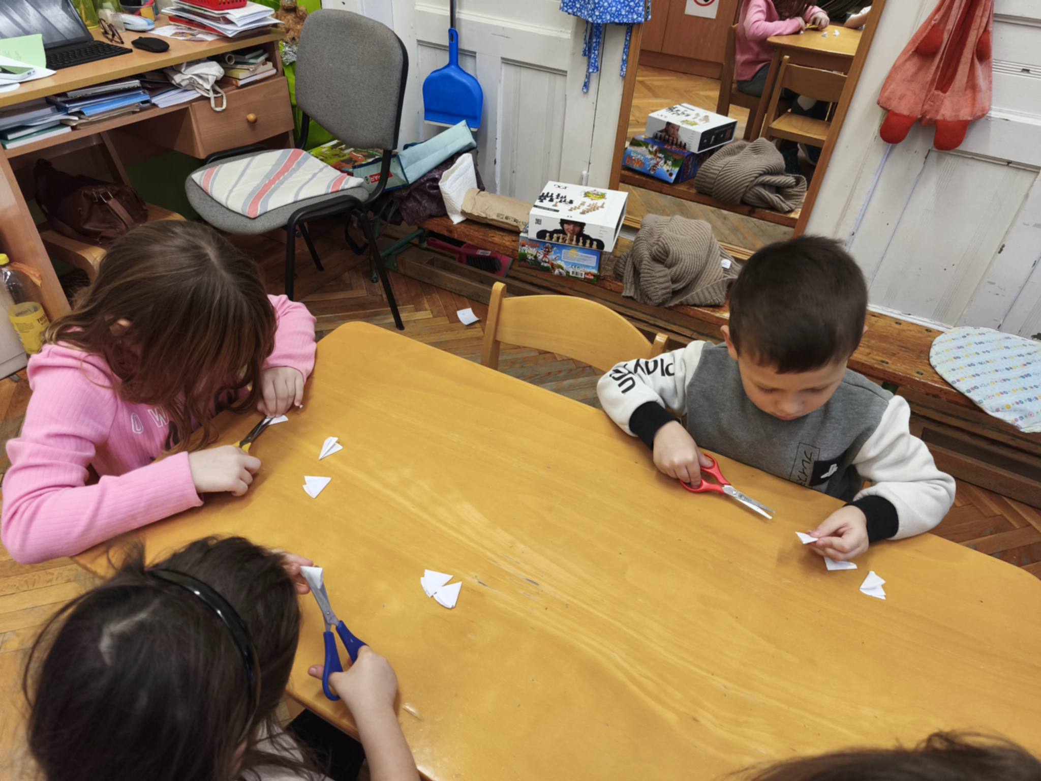 Elmondtuk, hogy ez kinek és miért öröm és, hogy ez is egy jó cselekedet. Felsorolták mi lehet még szerintük jócselekedet és azok milyen örömöt okozhatnak. A munkafüzet 31. oldalán található feladatlap megoldása is jó mulatság volt. Ezután Boldog Dóri elmesélte a „Szívem kertje” c. mesét. A beszélgetés során kiderült kit miért szoktak megdicsérni, jutalmazni, ez milyen érzés és milyen törekvésre ösztönöz. Vasalható gyöngyből szívecskéket raktak ki, a „jószívű címet” így mindenki kiérdemelte!!! A jócselekedetek jelét a szívecskét feltettük a negyedik lépcsőfokra, amely a Boldogság vár kapujához vezet.