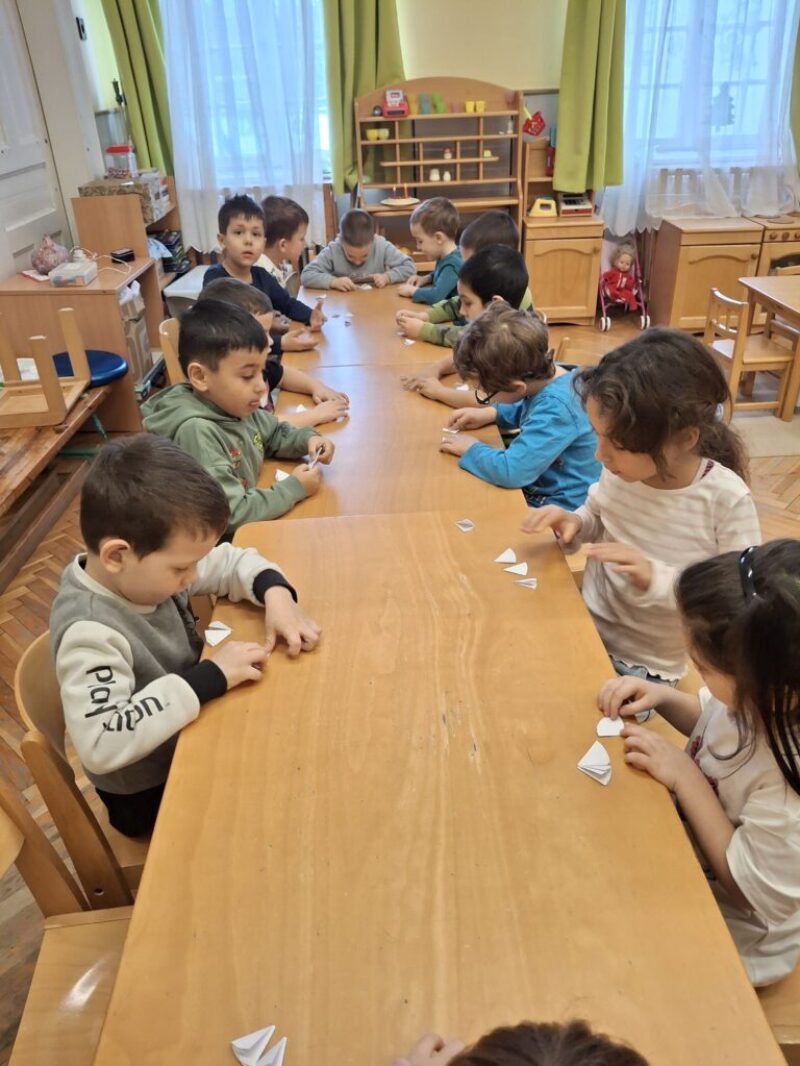 Beszélgettünk a madarakról való gondoskodásról, madáreleséget gyűjtöttünk közösen a szülők bevonásával, amit majd kiteszünk a gyerekekkel közösen készített madáretetőkbe.