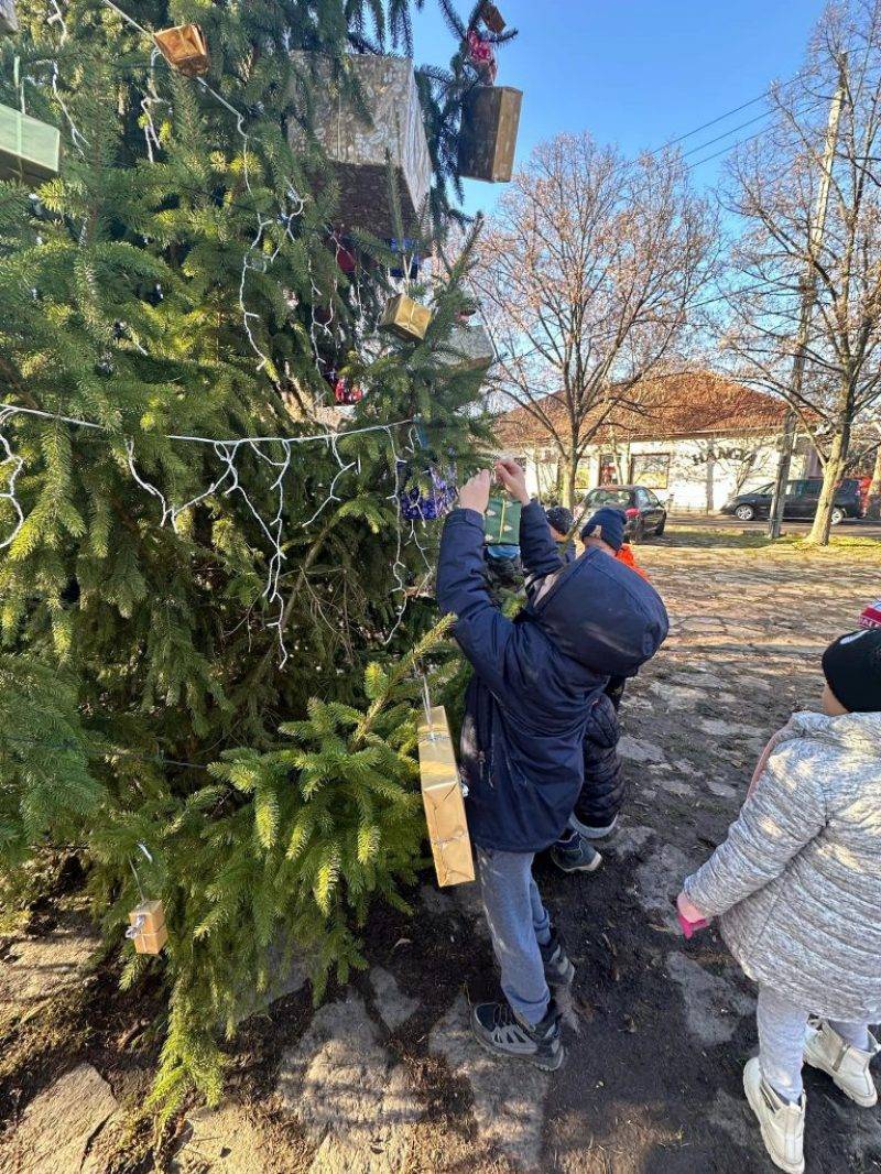 Az osztály is részt vett a falu karácsonyfájának díszítésében. Apró ajándékokkal kedveskedtünk a családtagoknak.