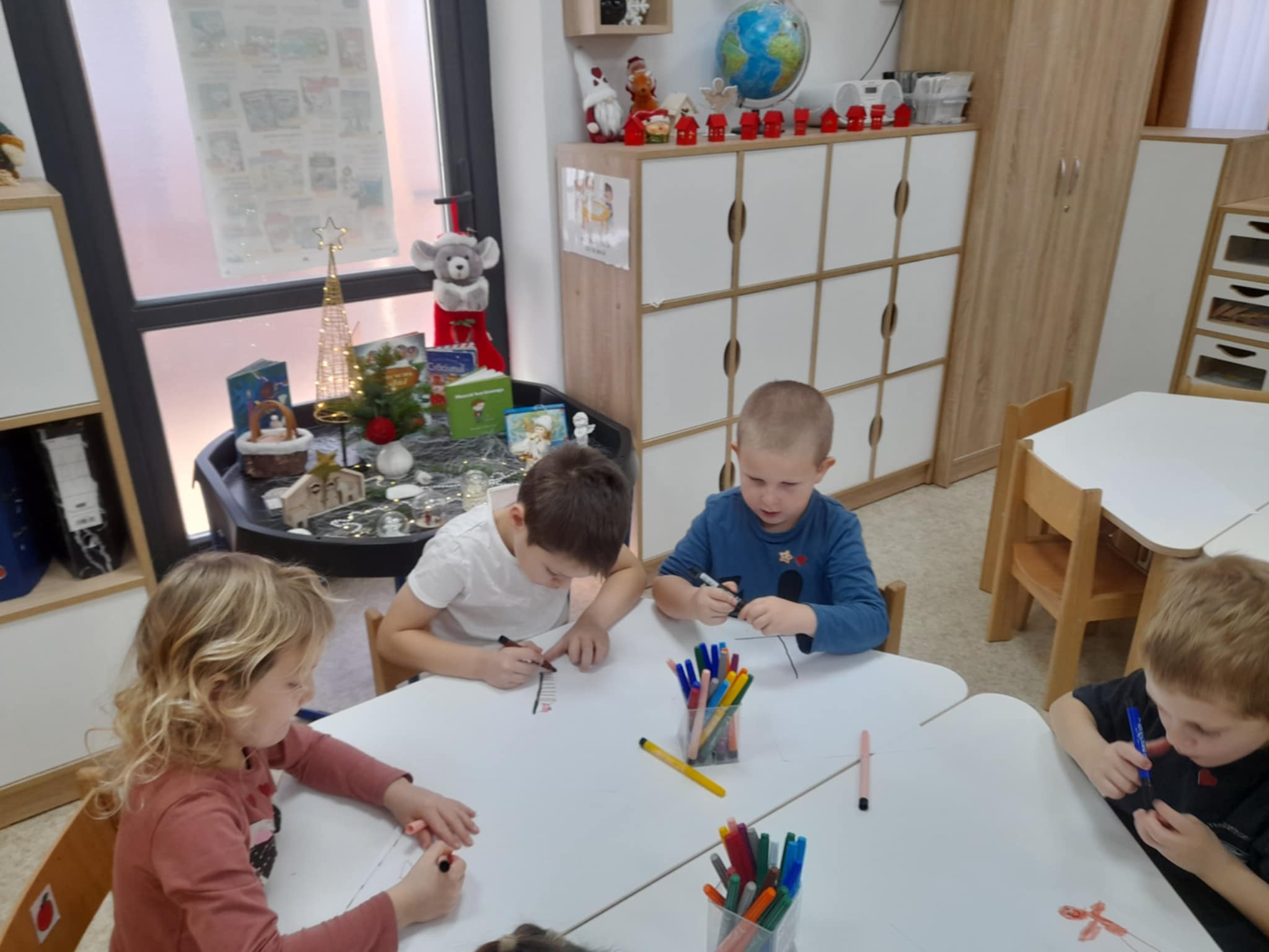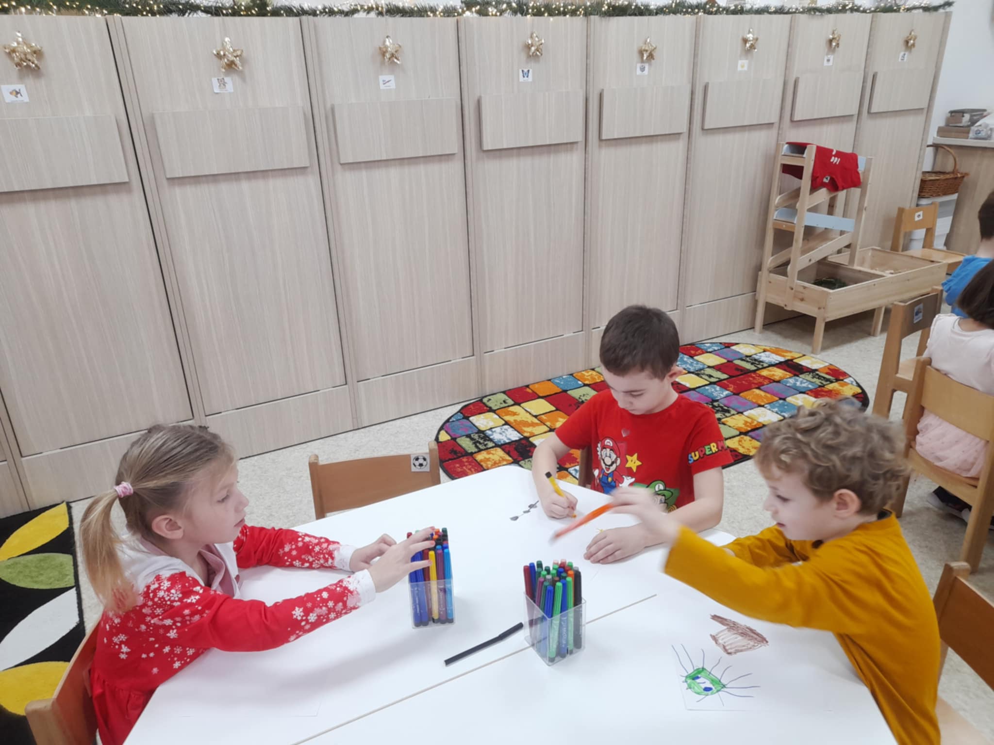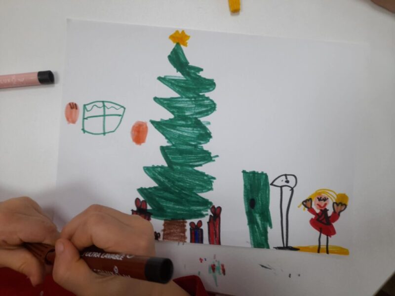 3. Rajz: Jó cselekedetek karácsonykor: Arra kértem a gyermekeket, hogy gondolják át, milyen jó cselekedetet tudnak véghez vinni, miben tudnak a családjuknak segíteni az ünnepi előkészületek során és rajzolják azt le. Volt aki a sütésben segítkezne anyának, mások a rendrakásban, takarításban stb. rajzok születtek.