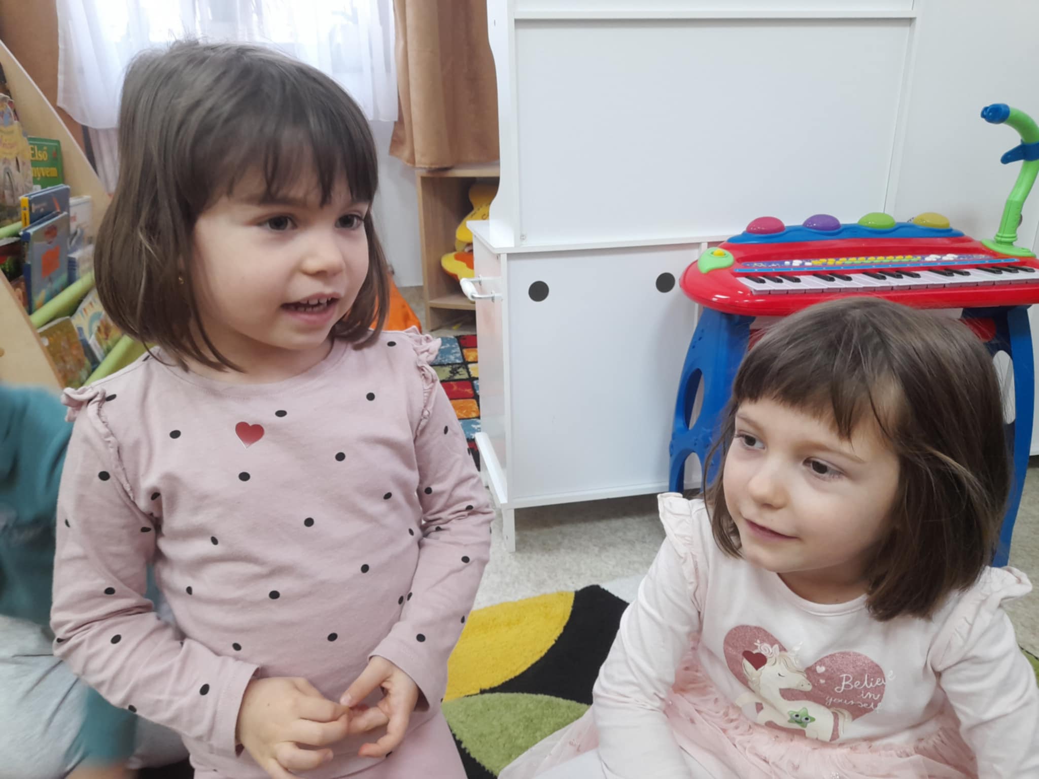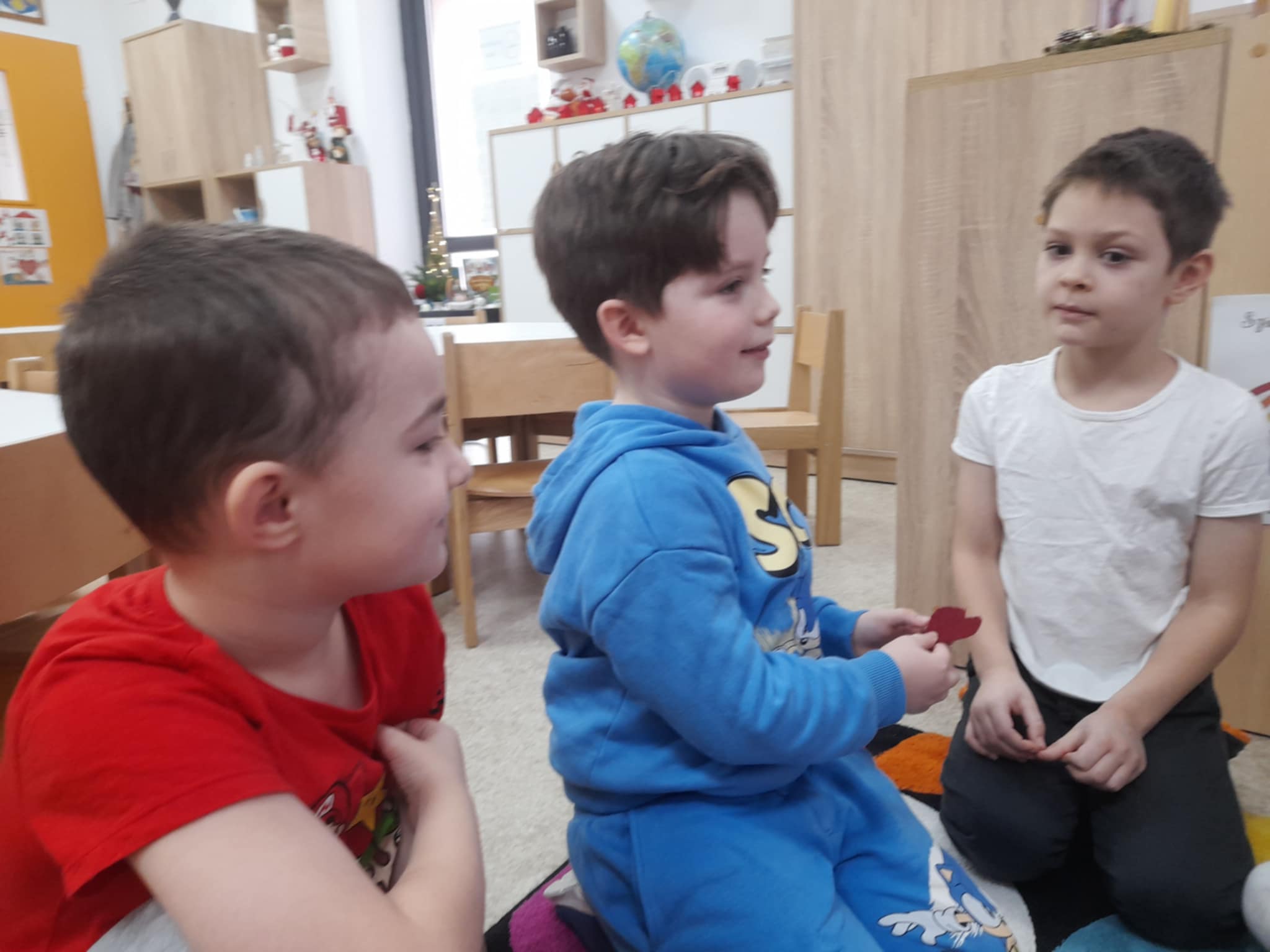 1. Ráhangolás: Egy filc szivecskét adtunk körbe, és minden gyermek elmondta a mellette levő társának, hogy „Azért szeretlek, mert ….”