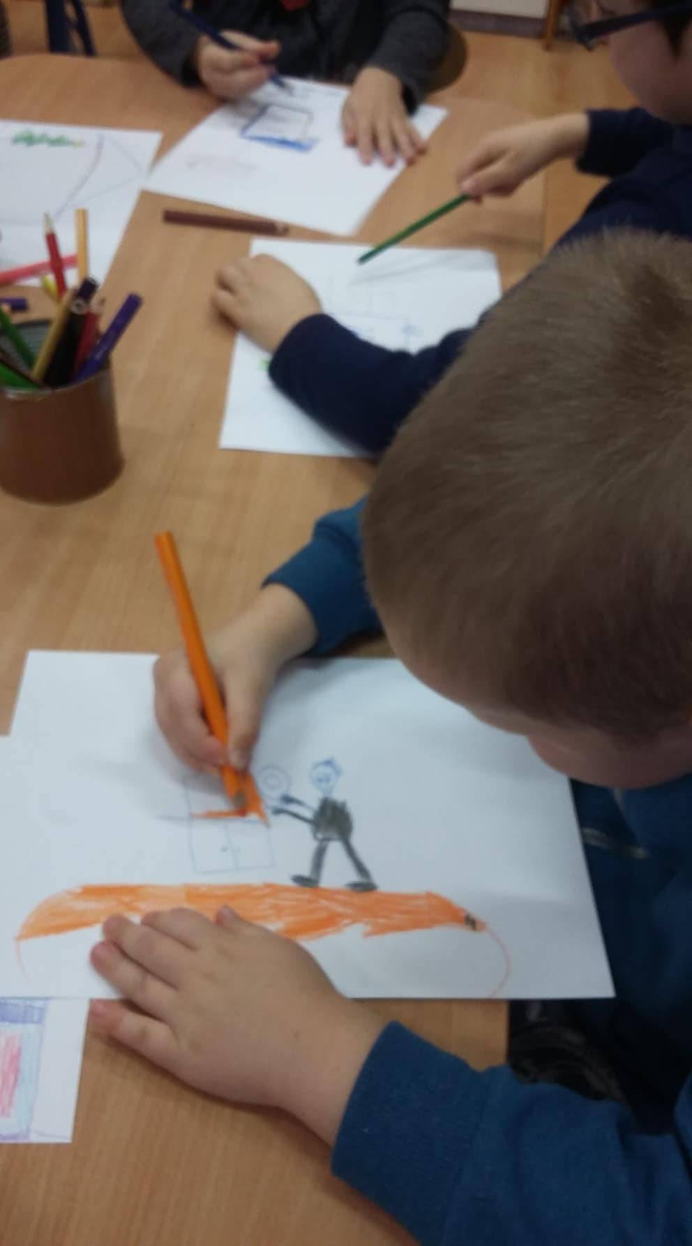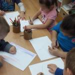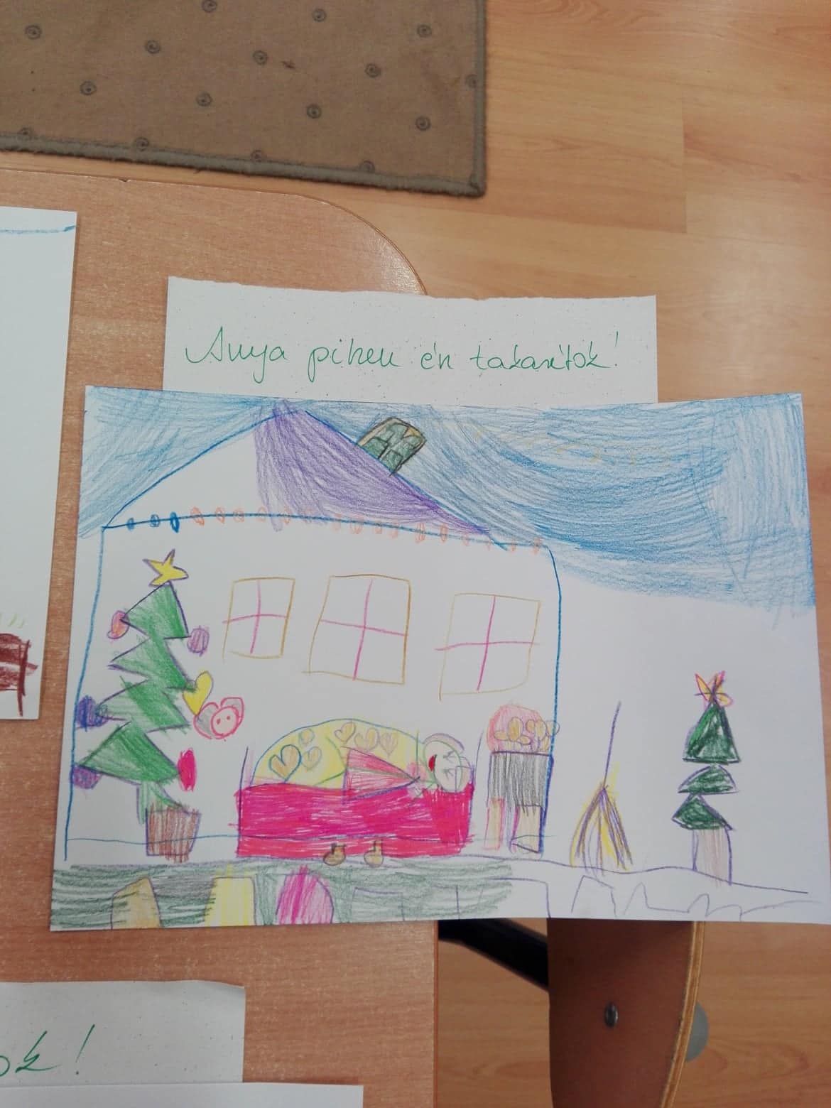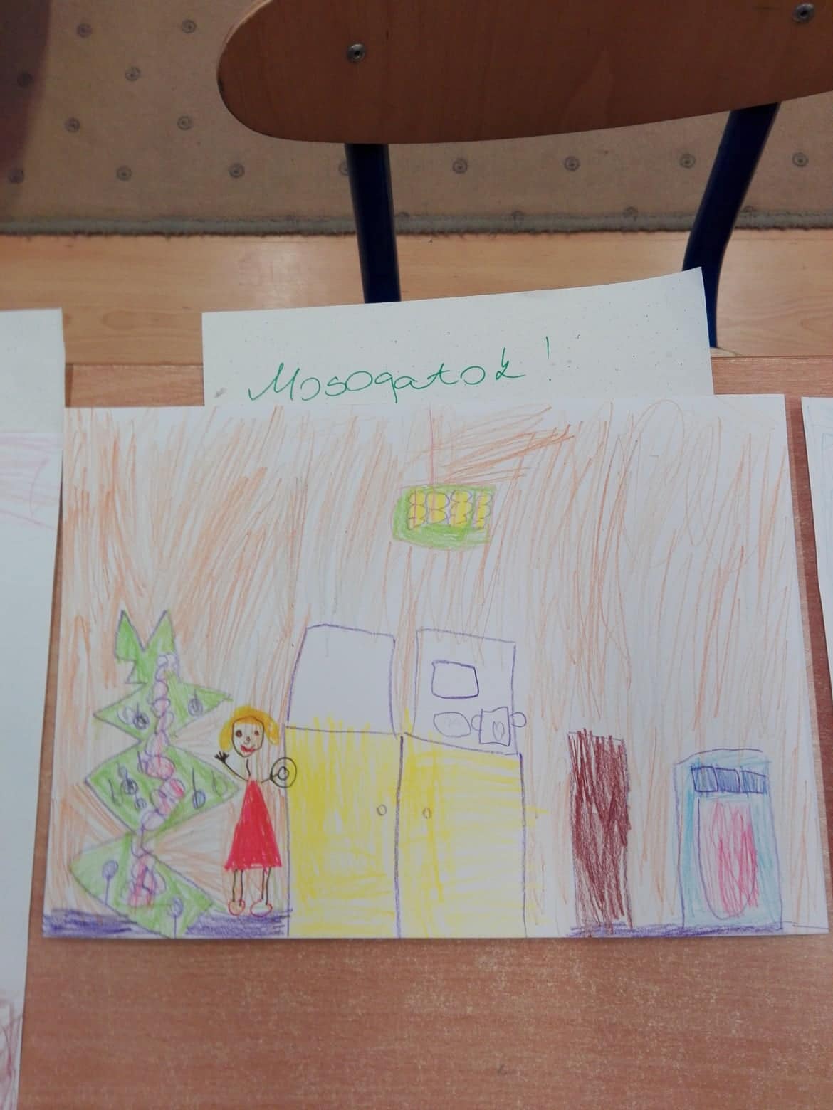 Miután meghallgatták a gyerekek a témához kapcsolódó mesét, lerajzolták, hogy otthon ki miben szokott a szüleinek segíteni, mint egy kis „Jótét Manó”.