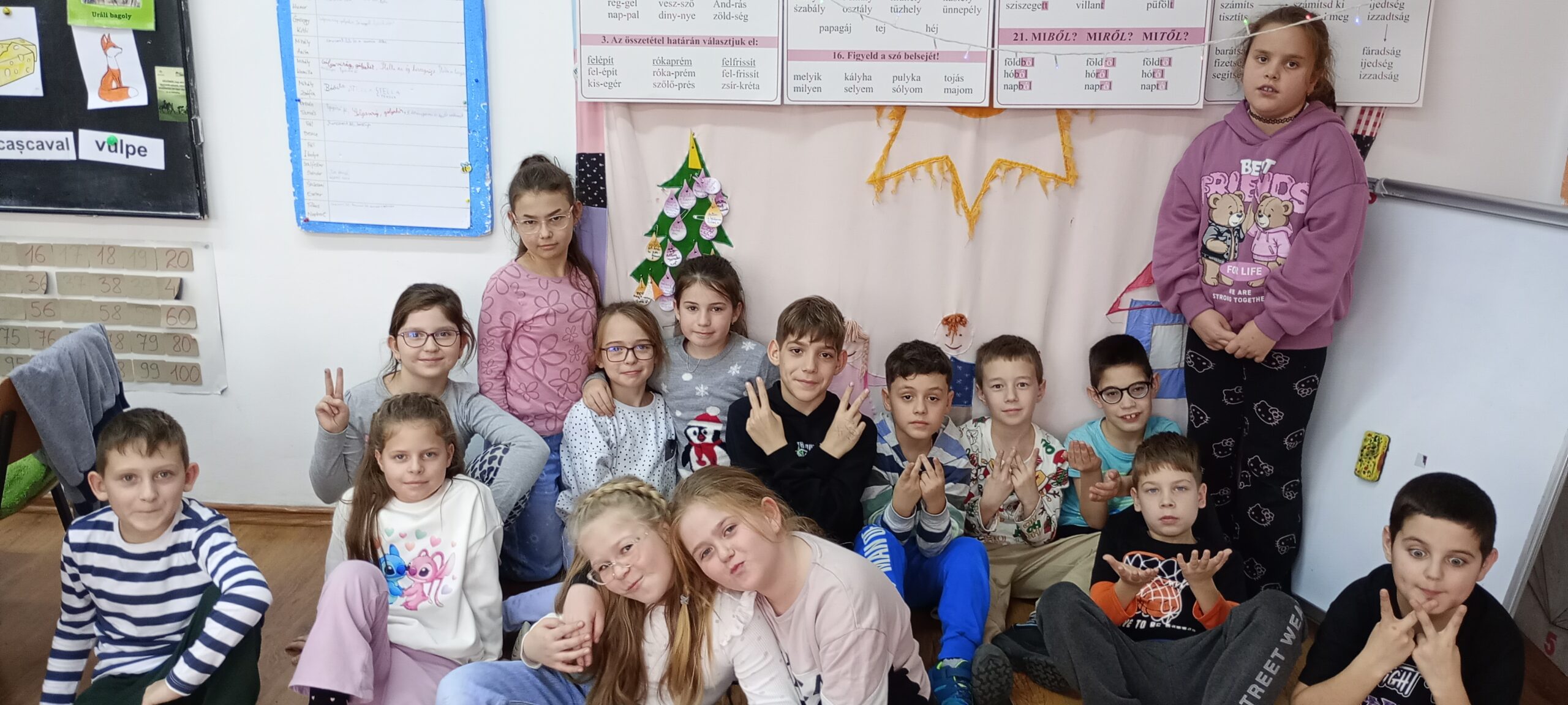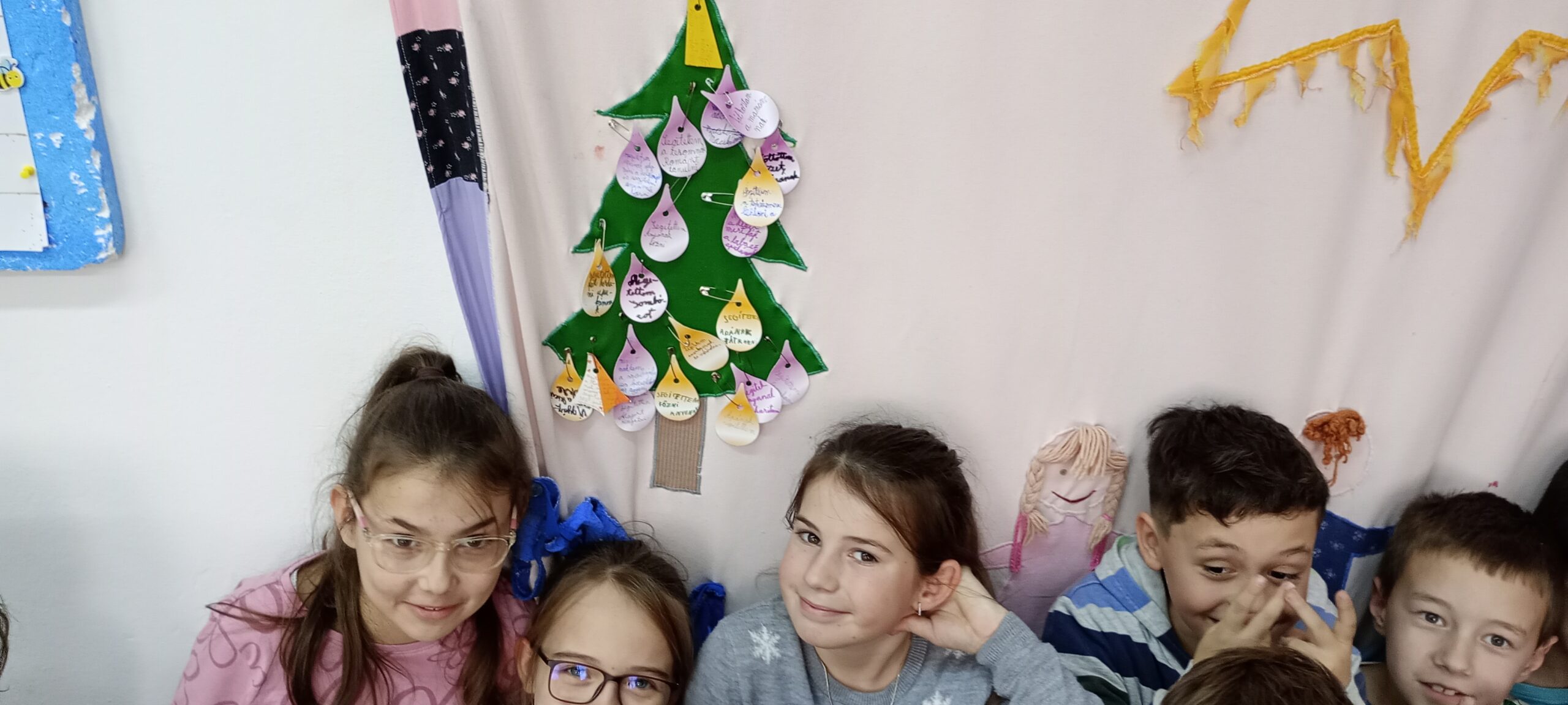 Ez már a boldogító jócselekedetek második órája volt, amikor elkészült a jócselekedetek karácsonyfája is. Előző órán már mesét is hallgattunk, ezen az órán pedig egy kis színes kartonra mindenki felírt egy jótettet, amit a múlt hét óta ő hajtott végre. Ezt tűztük fel a falvédőnkön levő fenyőfára.