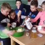 Harmadikosok vagyunk. A hónap elején valamennyien 3-5 vállalást tettünk, melyet igyekeztünk betartani. Figyeltünk ezekre a dolgokra. Rendszeresen nézegettük a lapjainkat, el ne felejtsük, mit vállaltunk. A többségünk sikerrel járt, a többiek konstatálták, sajnos ezt és ezt nem sikerült betartani, de igyekeztek, és ez a lényeg. Emellett a csapat úgy döntött, szeretne valami közös „jó tettet” véghez vinni. Az advent a mézeskalács sütésről is szól, és mi imádunk sütögetni. Így hát arra jutottunk, készítünk több tepsi mézeskalácsot. Gyúrtuk, nyújtottuk, szaggattuk, díszítettük, csomagoltuk, míg elkészültek a kis csomagocskák. Kisfalunkban sok idős ember él egyedül, ezért elhatároztuk, fölkeressük és meglepjük őket egy-egy ilyen ajándékkal. Izgultunk, hogyan fogadnak majd minket a nénik, bácsik. Előre kis kutató munkát végeztünk, kinek a környezetében élnek ilyen idősek. Legnagyobb örömünkre, szívélyesen, meghatódva fogadták el a csomagocskákat. Ettől mi is elérzékenyültünk, mert örömet szereztünk másoknak! Volt olyan néni, aki cserébe egy saját verssel ajándékozott meg minket. És ami még jó volt az egészben, hogy nagy