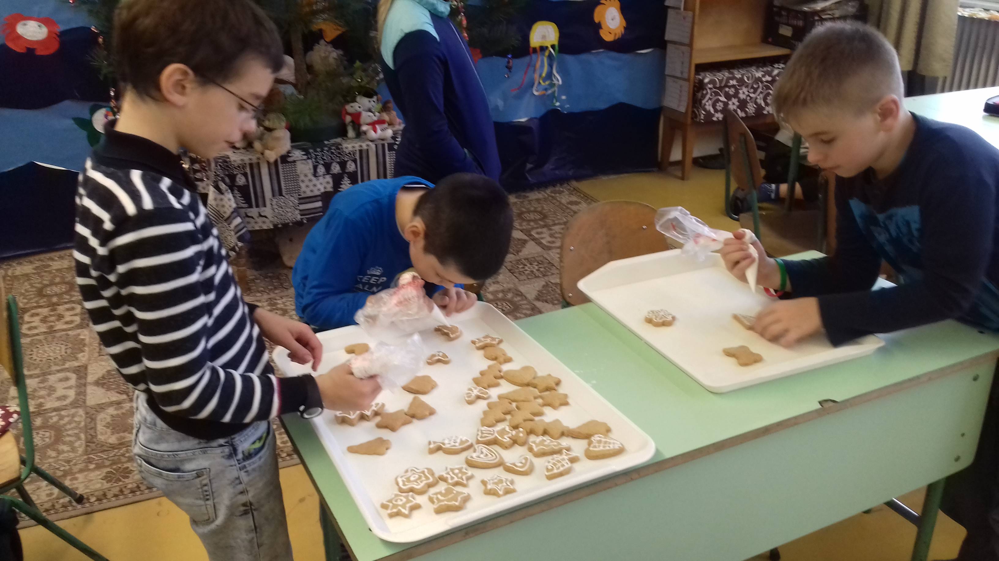 Harmadikosok vagyunk. A hónap elején valamennyien 3-5 vállalást tettünk, melyet igyekeztünk betartani. Figyeltünk ezekre a dolgokra. Rendszeresen nézegettük a lapjainkat, el ne felejtsük, mit vállaltunk. A többségünk sikerrel járt, a többiek konstatálták, sajnos ezt és ezt nem sikerült betartani, de igyekeztek, és ez a lényeg. Emellett a csapat úgy döntött, szeretne valami közös „jó tettet” véghez vinni. Az advent a mézeskalács sütésről is szól, és mi imádunk sütögetni. Így hát arra jutottunk, készítünk több tepsi mézeskalácsot. Gyúrtuk, nyújtottuk, szaggattuk, díszítettük, csomagoltuk, míg elkészültek a kis csomagocskák. Kisfalunkban sok idős ember él egyedül, ezért elhatároztuk, fölkeressük és meglepjük őket egy-egy ilyen ajándékkal. Izgultunk, hogyan fogadnak majd minket a nénik, bácsik. Előre kis kutató munkát végeztünk, kinek a környezetében élnek ilyen idősek. Legnagyobb örömünkre, szívélyesen, meghatódva fogadták el a csomagocskákat. Ettől mi is elérzékenyültünk, mert örömet szereztünk másoknak! Volt olyan néni, aki cserébe egy saját verssel ajándékozott meg minket. És ami még jó volt az egészben, hogy nagy
