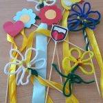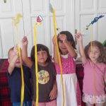 Mindenki készített egy varázspálcát, melyre szalagot erősítettünk. Az ajánlástól eltérően, nem tekertük fel a botra a szalagot, hanem hagytuk szabadon lebegni.