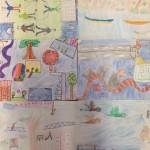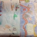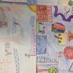 Páros munkával végzett rajzok készítése 4. osztályban. Képzeletbeli kalandparkok rajzolása, színezése. A fantáziáknak határt nem szabva.
