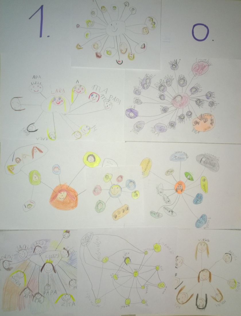 Izgalmas feladat volt boncolgatni, hogy ki kivel áll kapcsolatban. Először a gyerekek a saját családjukban elfoglalt helyüket igyekeztek megjeleníteni. Az osztálytársakkal való kapcsolat is több gyerek rajzán megjelent.
