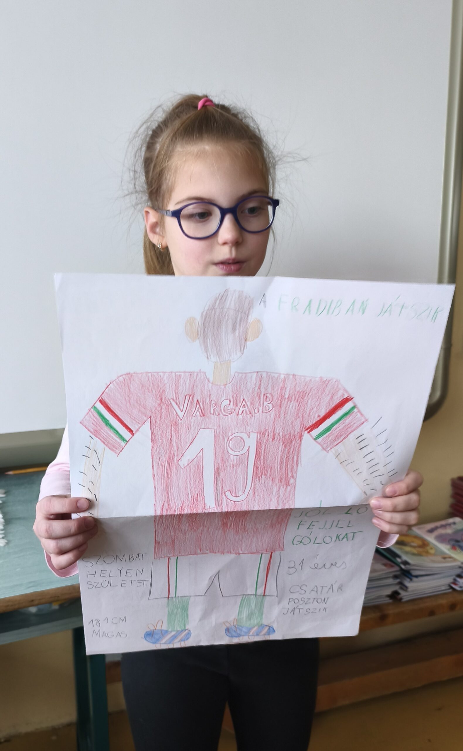 Az osztályban nagyon szeretik a sportokat, így november 25-én, a Magyar Labdarúgás napjára fel lehetett készülni egy-egy sportoló életútjából néhány mondattal, képpel, kártyával vagy rajzzal. Nagyon lelkesen vállalkoztak a feladatra és boldogan kutattak a kedvencük után és számoltak be róla társaiknak.