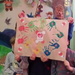 A tenyérlenyomatos „csodaszív” plakátunk elkészítése élményekkel teli színes pillanat volt számunkra. A “polipjátékunkat” most sem hagytuk ki a játékainkból. Szemmel látható volt, hogy a gyermekek egyre jobban figyelnek egymásra és együttműködve oldják meg a feladatot. Az óra zárásaként “Ellazulni, jaj de jó” zenés relaxáció lehetőséget adott lecsendesedésre és a jó hangulatban való búcsúzásra.