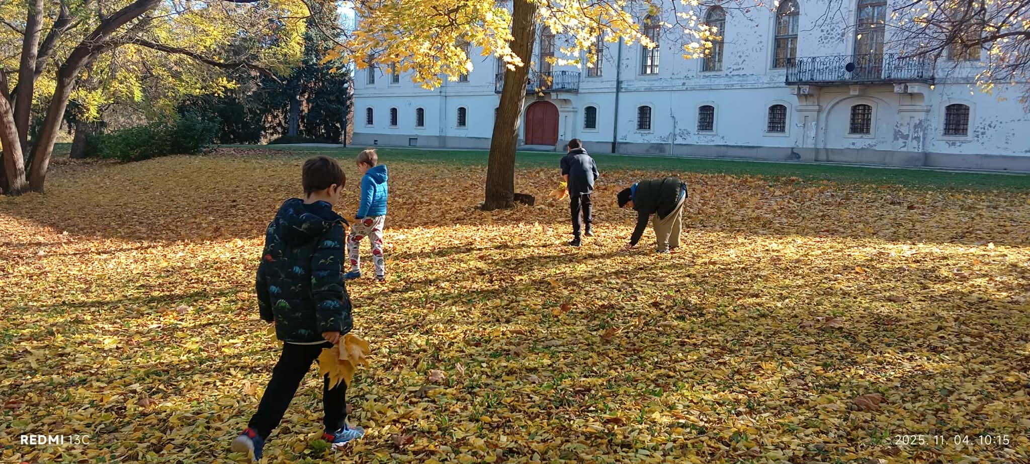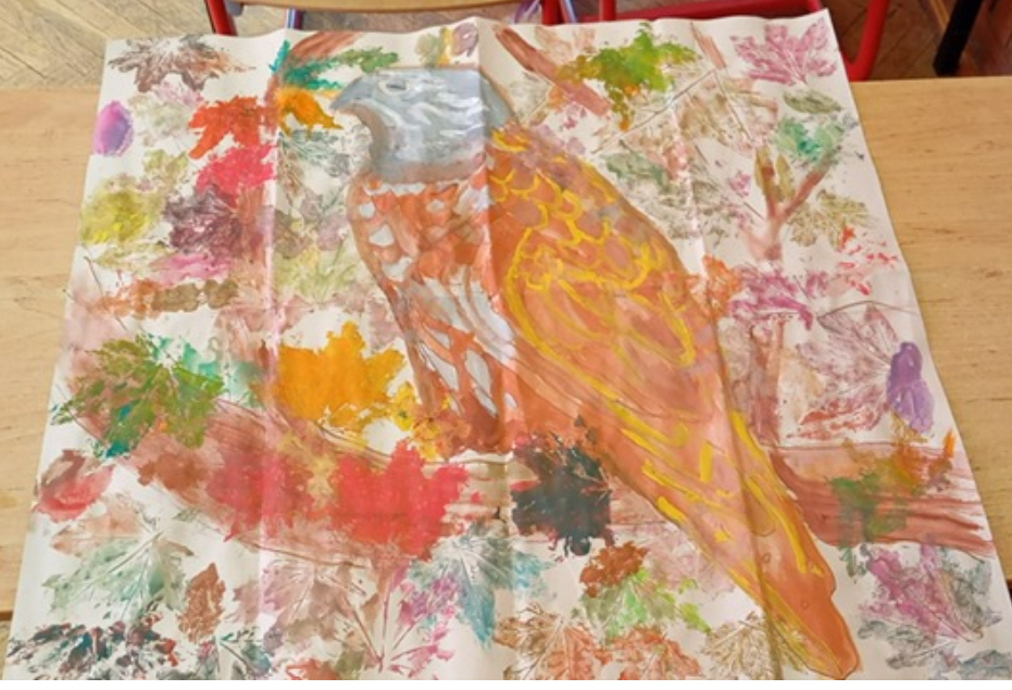 A “Világ Legnagyobb Tanórájához” csatlakoztunk, amelyhez falevelet gyűjtöttünk és megcsodálhattuk ugyanazon fától származó levelek sokszínűségét. Nap folyamán levélnyomatokat készítettünk belőlük és megalkottuk a Kerecsen sólymot, ahogyan mi elképzeltük az otthonában, biztonságban megpihenve. A gyerekek lelkesen dolgoztak, egymást segítve formálták a közös képet.