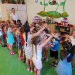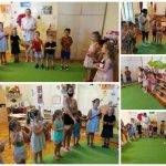 Az utolsó témakör a fenntartható boldogság, lehetőséget nyújtott újra átélni a szép pillanatokat, a nevelési év során tanult új élményeket. Arra gondoltunk, hogy újra együtt tartunk egy “boldog napot”, így az aktuálisan oviba járó Gomba és a Napocska csoport csatlakozott a Katicákhoz. Néhányan már a nyári szünetet élvezték, így kevesebb létszámmal, vegyes korosztállyal játszottunk, ennek ellenére nagyon jó hangulat alakult ki és egyre nyitottabbak lettek a pajtások. A felnőttek közül is volt érdeklődő óvó néni, aki szívesen csatlakozott, mert már nagyon érdekelte, hogyan zajlik egy ilyen nap.