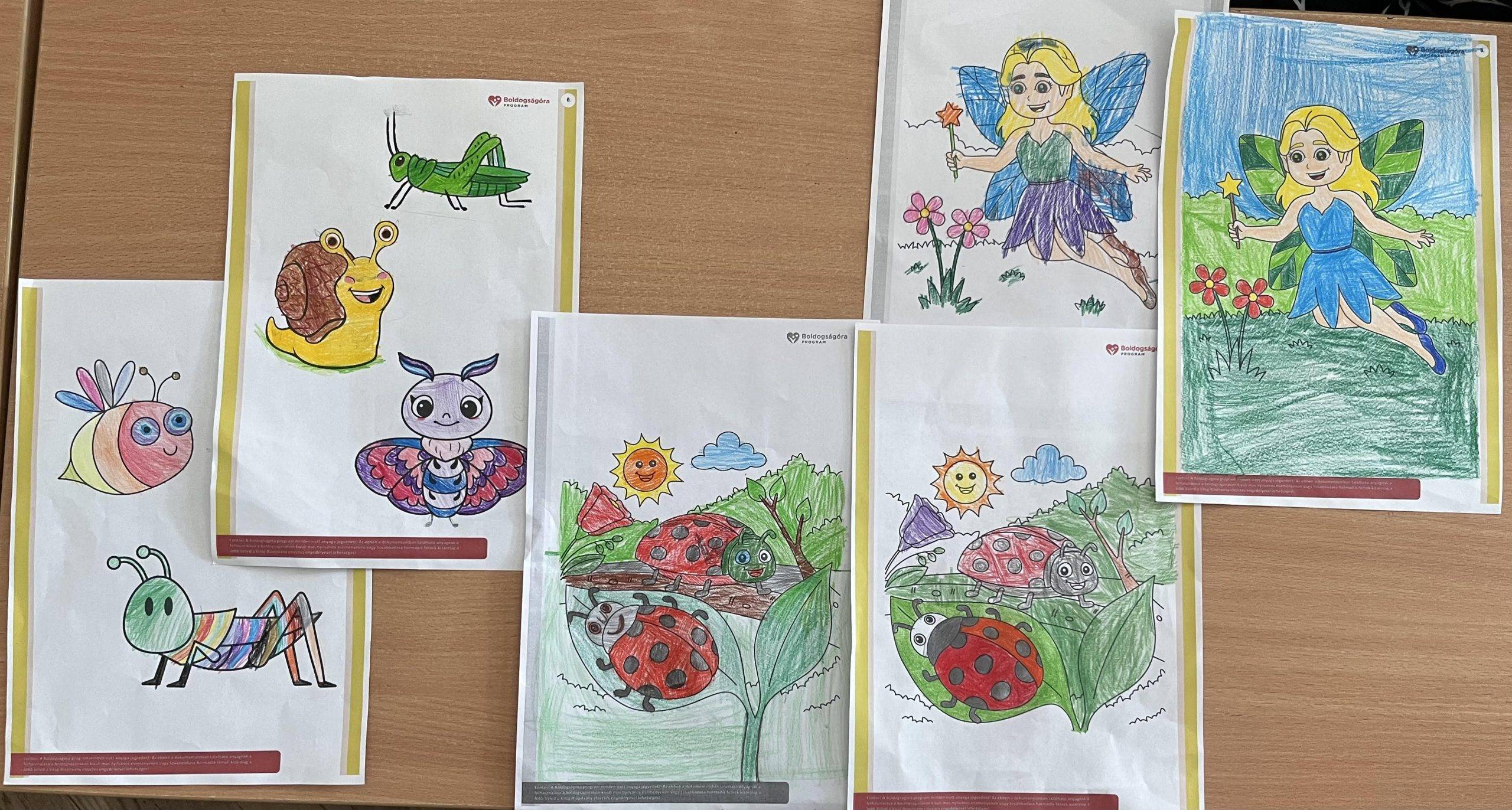 Miután meghallgatták a gyerekek a Katica elveszett pöttyei című mesét, beszélgettünk a szereplők tulajdonságairól, cselekedeteikről. Mindenki választott egy szereplőt, akinek a bőrébe szívesen bújt volna. Voltak közkedvelt szereplők és olyan is, akit senki sem választott. Egyetértettünk abban, hogy a kellemetlen érzésekről nehéz beszélni, de szükséges ahhoz, hogy továbbléphessünk. Színezés közben, felidéztük milyen témákkal foglalkoztunk a Boldogságórákon, melyik feladatokat szerették legjobban a tanév során.