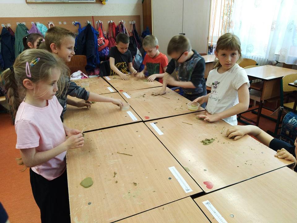 Agyagból készítettünk szív formájú medált és köveket is festettünk.