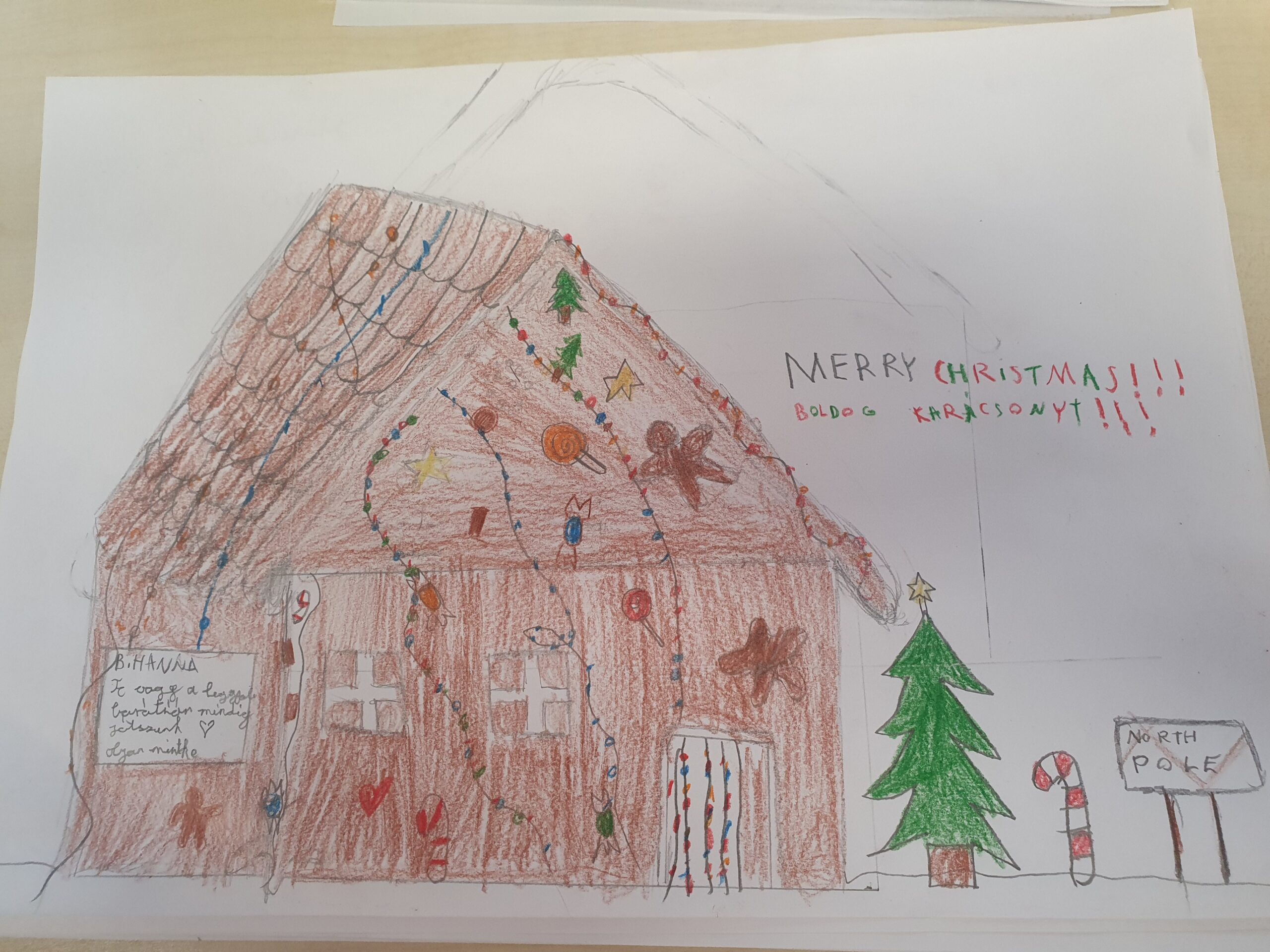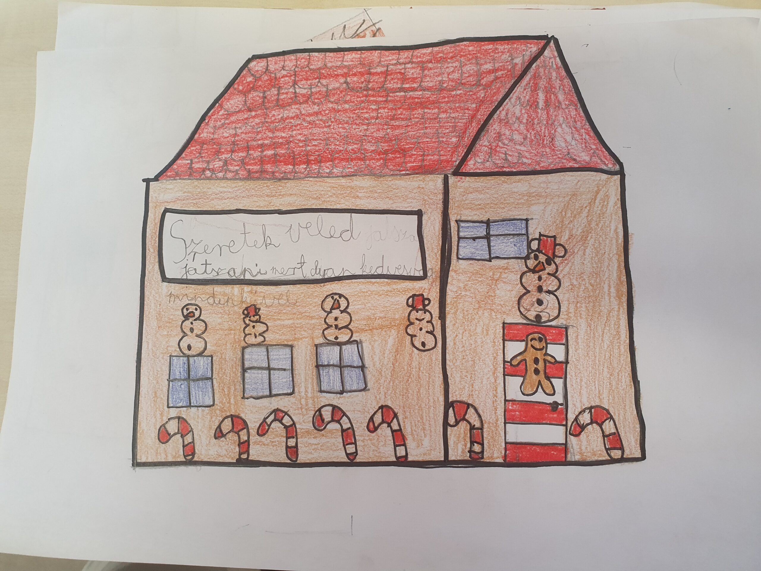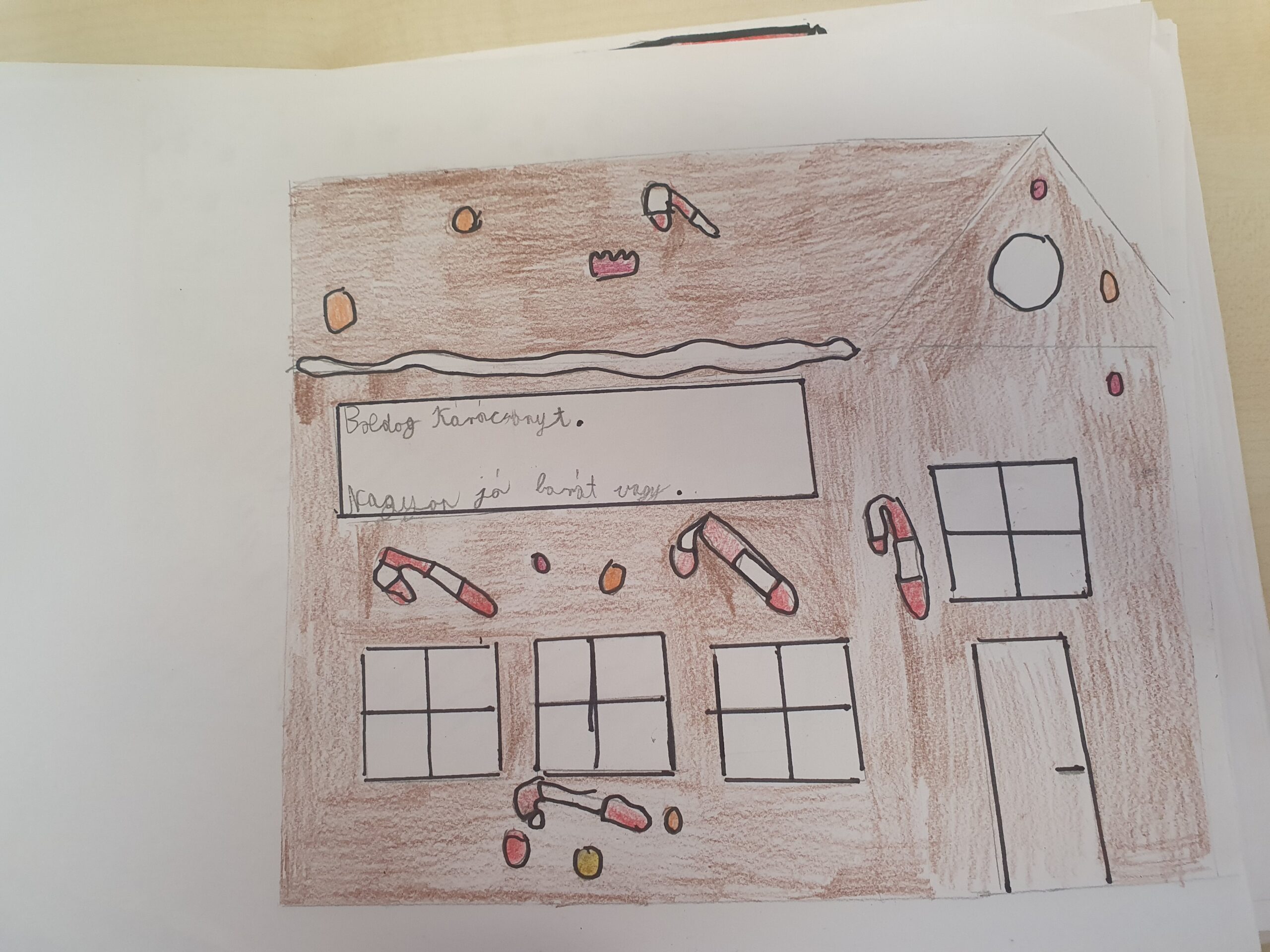 A decemberi Boldogságórát az Advent, az ünnepi készülődés jegyében töltöttük el. A cél az volt, hogy a tanulók felismerjék, hogy a kedvesség és az önzetlen jó cselekedetek nemcsak másoknak, hanem saját maguknak is örömet okoznak, és hozzájárulnak az osztályközösség pozitív légköréhez. Beszélgettünk arról, hogy mit jelent kedvesnek lenni; kell-e pénz ahhoz, hogy jót tegyünk? Egy rövid ünnepi témájú történet is feldolgozásra került: Lázár Ervin: A másik Télapó. Arra a kérdésre, hogy ha te lennél a másik Télapó, akkor mit adnál másoknak, ha nem tárgyakat, hanem érzéseket ajándékozhatnál, szívmelengető válaszok születtek: szeretetet, békét, örömöt, segítőkészséget, boldogságot. Összegyűjtöttük egy képzeletbeli kosárban, hogy milyen jó cselekedeteket tudnának véghezvinni otthon, az iskolában, barátok között, idegenekkel. Mivel december 12-én volt a Mézeskalácsház Napja, ezért rajzoltak egymásnak matematikai feladványok segítségével egy mézeskalács házikót, amelyeket aztán kidíszítettek, ráírtak egy kedves üzenetet és odaajándékozták egymásnak. A foglalkozás zárógondolata pedig az volt, hogy „A kedvesség az az ajándék, amit akkor is megkapunk, amikor másnak adjuk.”