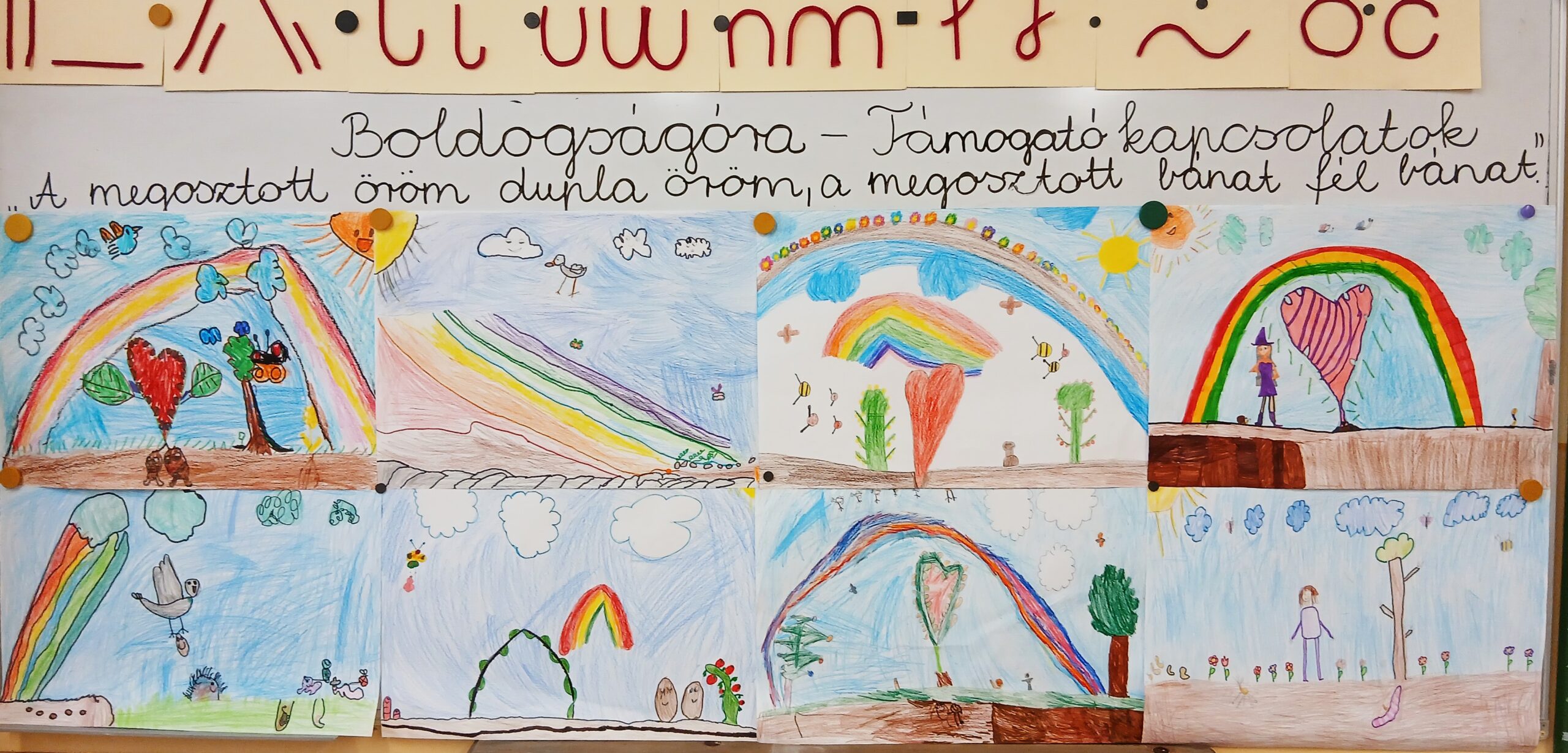 Az 1.c osztály tanulói a társas/támogató kapcsolatok témakört dolgozták fel a boldogságóra program novemberi témájaként. Ráhangolódásként Bagdi Bella : „Ha boldog vagy” című dalával jókedvűen indult az óra. Majd az óráink mottója is felkerült táblára: