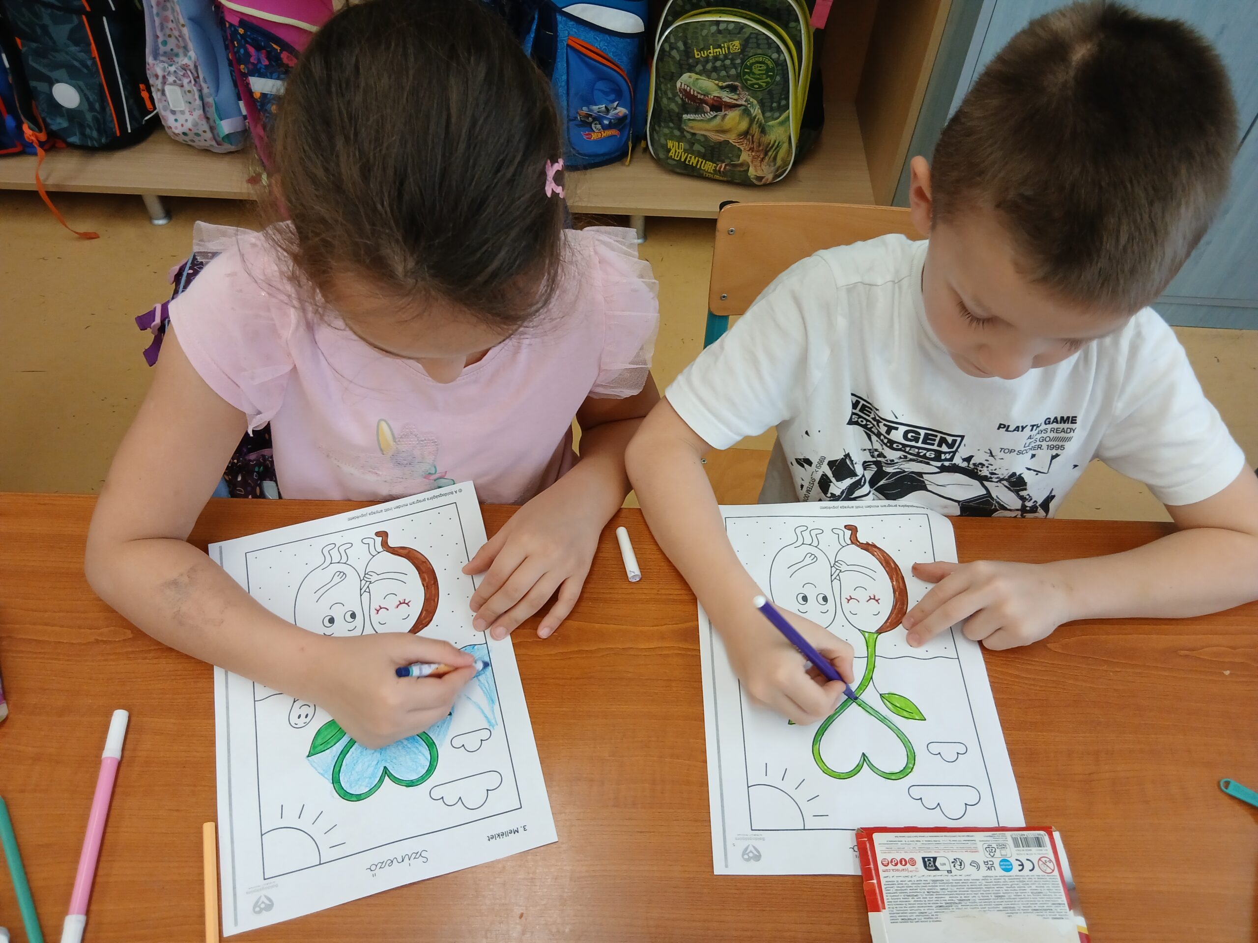 Miután megbeszéltük, hogy mennyire fontosak a társas kapcsolatok és milyen erővel bírnak a támogató kapcsolatok, Horváth Adél és Horváth Lili díjnyertes meséje, „Mekkora szíve van egy babszemnek?” került tanítói felolvasásra. A gyerekek figyelmesen, érdeklődve hallgatták végig a mesét. Melyet feldolgozás után részekre bontottak és páros munkában készítették el kreatív alkotásaikat a tanulók. A téma végső befejezését a bájos színezők adták a két babszemről.