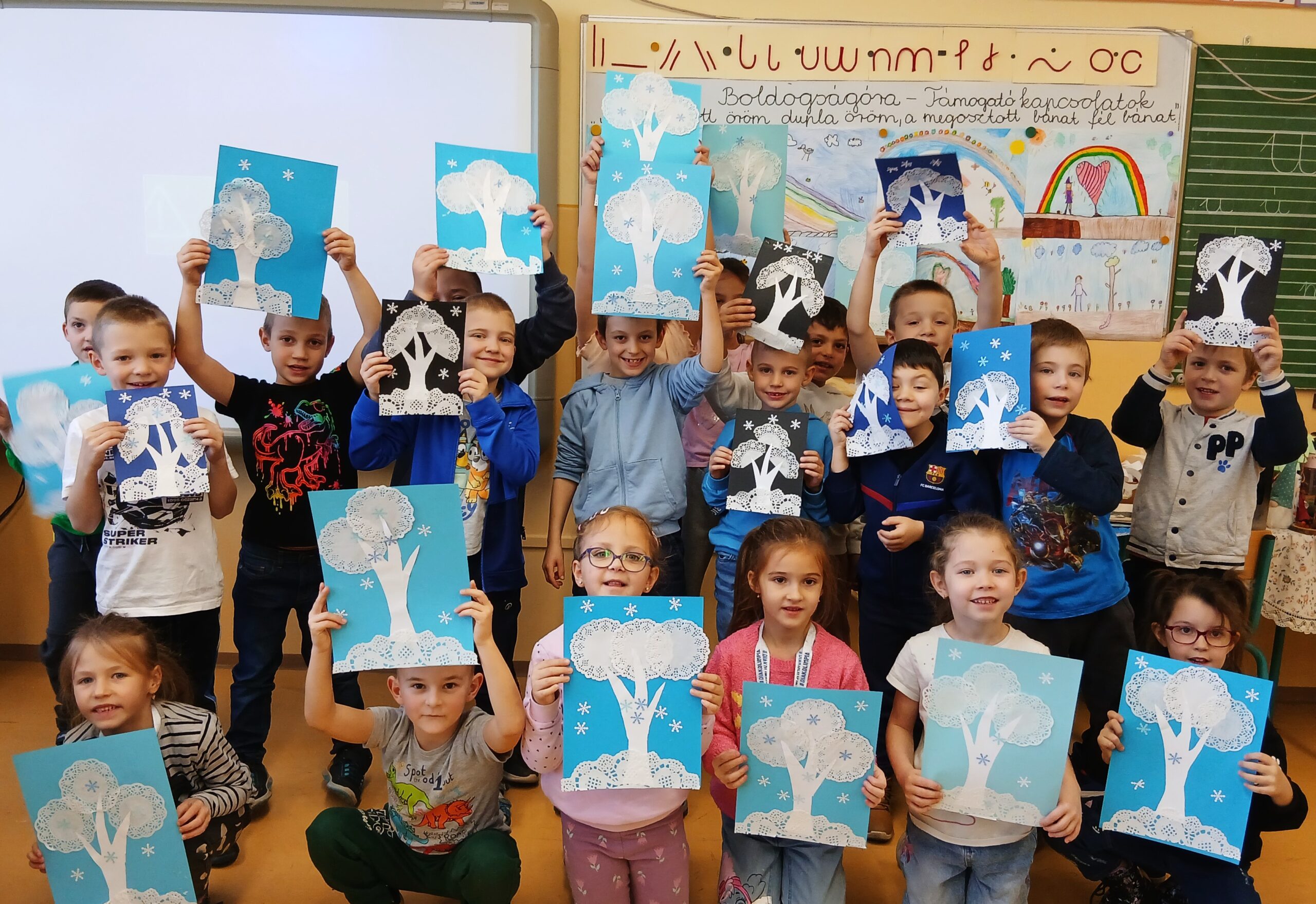 Ezután tortacsipkéből és hópelyhekből boldogságfák készültek, melyeknek mindhárom ága a gyerekek erősségeit rejtette, melyeket magukról ők fogalmaztak meg.