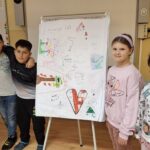 A boldogságóra keretében a gyerekek azt a feladatot kapták, hogy minél több szinonimát gyűjtsenek a kedvesség fogalmára. Olyan kedves szavakat és mondatokat írtak le, amelyeket a mindennapokban is használnak mások bátorítására és megerősítésére. Az elkészült plakát a „Kedvességfal” címet kapta.