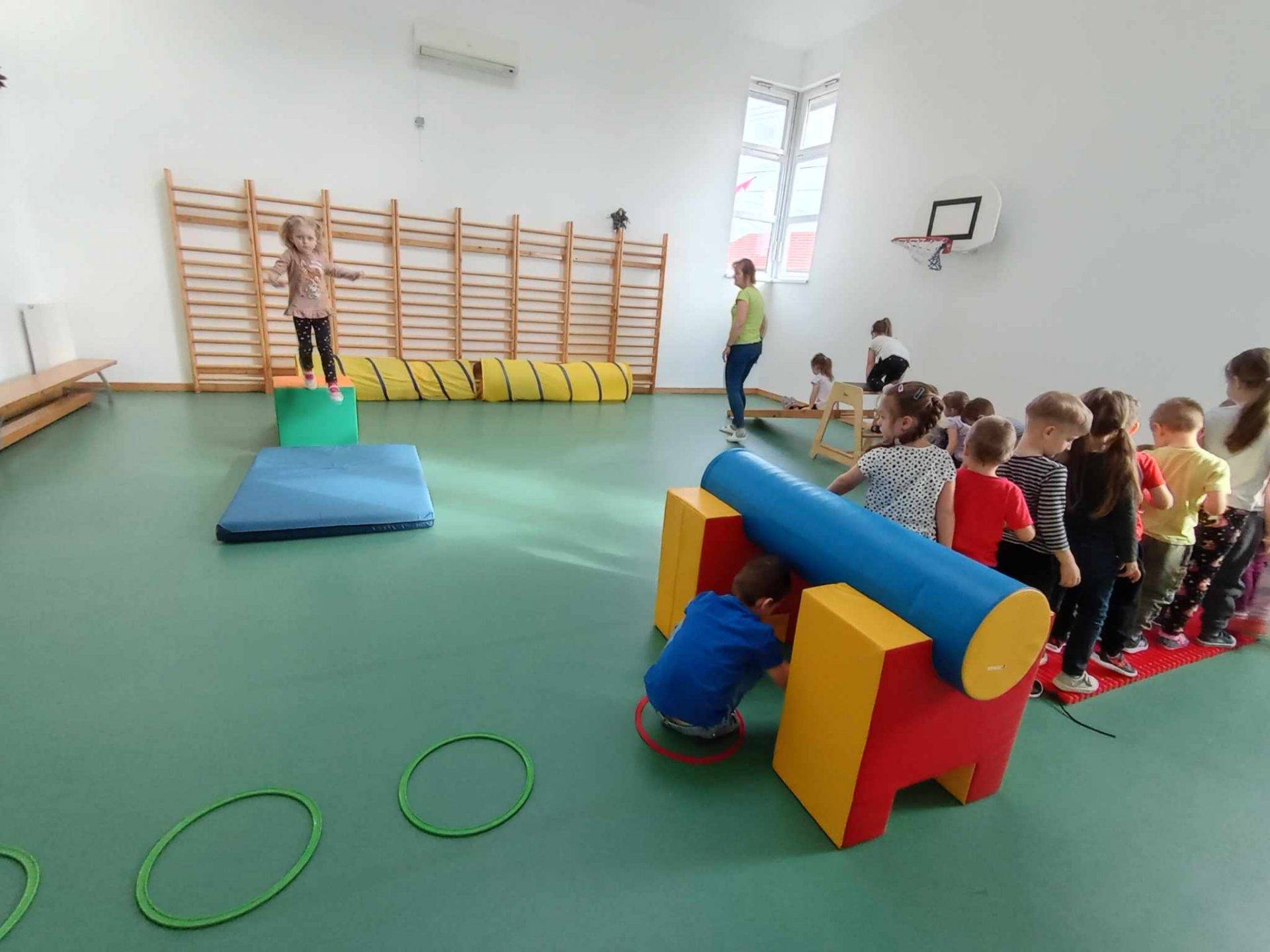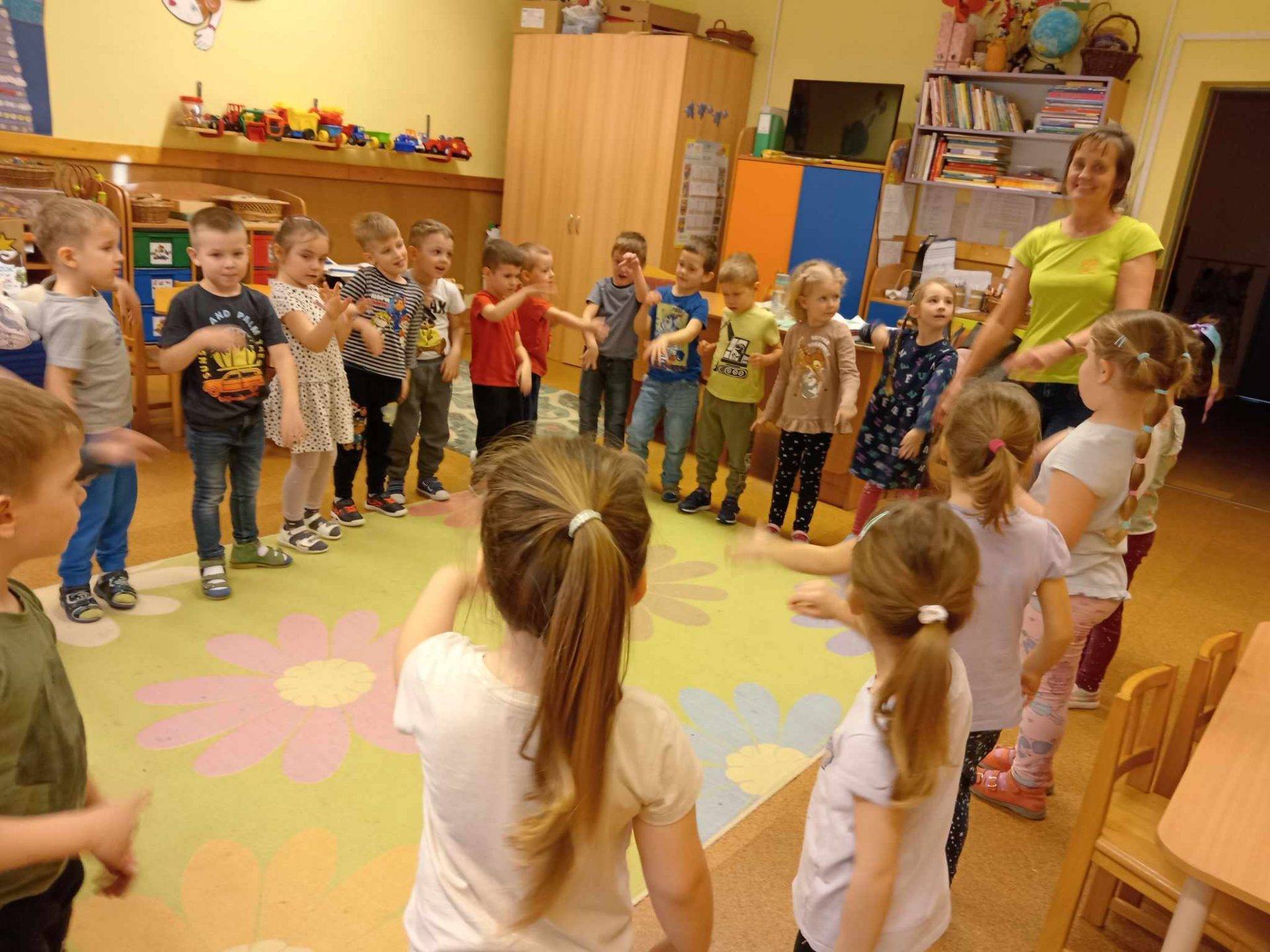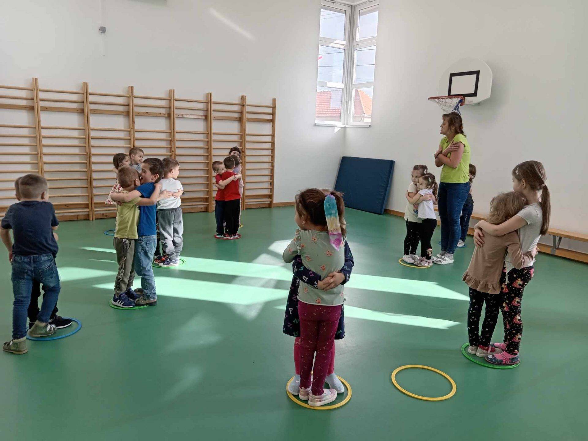 A hatodik Boldogságórához érkeztünk. Ma egy kicsit másképpen kezdeményeztem az órát, mint eddig. Felkeltettem a gyermekek érdeklődését, hogy nézzenek körül a csoportban, mert valami megváltozott. Kíváncsiak lettek, megkezdték a keresést. Nehezen ment a kutakodás, így a” hideg-meleg” játékot segítségül hívtam. Elérkeztek a babaszobához, ahol meglepődve tapasztalták, hogy a kosárból eltűntek a plüss játékaik. Kesztyűbábot használtam Pók néni megszemélyesítéséhez, aki elmesélte, hogy csak akkor adja vissza a játékokat, ha teljesítik az akadálypályán való átjutást. Az akadálypályát a tornateremben rendeztem be, még a gyermekek érkezése előtt. Igyekeztem változatos akadályokat kialakítani, amelyen érezhetik majd a megküzdést, a feladatok teljesítése közben. Pók néni kérte a gyermekeket, hogy menjenek vele, szerezzék vissza a játékaikat. Az akadálypálya látványa izgalomba hozta őket. Egy erdőbe varázsoltam el a gyermekeket, ahol különböző nehézségű feladatok vártak rájuk. Megbeszéltük a biztonságos végighaladás szabályait, majd indult a játék. Differenciáltan segítettem őket akadályokon való haladás közben, de lehetőséget adtam egymás megsegítésére is. Vidám hangulatban minden akadályt teljesítettek, majd kérésükre, még egyszer kipróbálhatták. A játékaikat a kosárháló tetejére tettem, amelyet nekik kellett megkeresni. Pók néni a bordásfalról figyelte az eseményeket, majd a feladat végén megelégedéssel visszaadta az elvett plüssöket. A játék végén megbeszéltük, kinek mi volt a legnehezebb feladat, hogyan érezte magát közben. Csoportszobába visszaérkezve egy kicsit megpihentünk Bagdi Bella: Ellazulni, jaj, de jó dalára. A gyermekek remekül improvizálták a mozgásokat, többen párban is táncoltak. Ekkor kérdezték meg tőlem, hogy ez most Boldogságóra? Én meg tőlük, hogy ki hiányzik még? Boldog Dórát nem felejtették el, akit előcsalogattunk a varázsládánkból. Az Aranykulcs mesét, úgy gondoltam, hogy hosszú mese lesz a középsőseim számára. Próbáltam hangszínemmel felkelteni az érdeklődésüket, metakommunikatív elemekkel színesítettem előadásomat. Számomra is meglepő volt, hogy kitartóan figyeltek.(el is fáradtak az akadálypályán). Hagytam, hogy saját képzelőerejüket használják a mesélés alatt. Láttam az arcukon, hogy átélték a mese cselekményét. A mese végén ügyesen megfogalmazták, gondolataikat. A sárkány volt számukra a legkedvesebb mesehős, aki segített a királylánynak az aranykulcs megtalálásában. Ezt követően az óra nyugodtabb részét, ismét mozgásos játékkal folytattuk. A „cápatámadás „játék aktuális téma, hiszen a kompetenciás programcsomag víz témakörében tevékenykedtünk a héten. Különösen tetszett nekik, hogy egy karikába több gyermek is állhatott. A gyermekek ismét felfokozott hangulatba kerültek a többszöri játék során. A Boldogság dala minden óra legkedveltebb zenéje, melyet vidáman táncolva énekelnek. Az óra zárasaként kiszínezték a megküzdés jelét, melyet felhelyeztünk a Boldogság várunkra. Többen is megszámolták, hogy hány lépcsőfok van még a tetejéig, hogy felérjünk. Csoportunk az akadálypályára való induláskor, felkeltette másik csoport érdeklődését. Hova megyünk, mit csinálunk majd ott? Ki az a Pók néni? Természetesen Pók néni mindenkivel szívesen beszélget. Elmesélte nekik, hogy mi történt, valamint felajánlotta, hogy az elkészített akadálypályát, kipróbálhatják. A mai órát is vidám hangulatban zártuk le, a gyermekek már kérdezgették: Mikor lesz már a következő Boldogóra? A szülőknek fényképes dokumentációt készítek az Boldogságórákról, melyet szülői megbeszélésen megtekintenek. Örömmel tölt el, hogy pozitívan nyilatkoznak, szívesen veszik, ha kapnak információt, hogyan zajlik egy ilyen óra, mi történik ott. Igyekszem őket minden alkalommal tájékoztatni. Számomra a legfontosabb mégis az, hogy az én kis Harangosaim élményekkel gazdagodjanak, érzelmileg töltődjenek fel minden Boldogságórán!