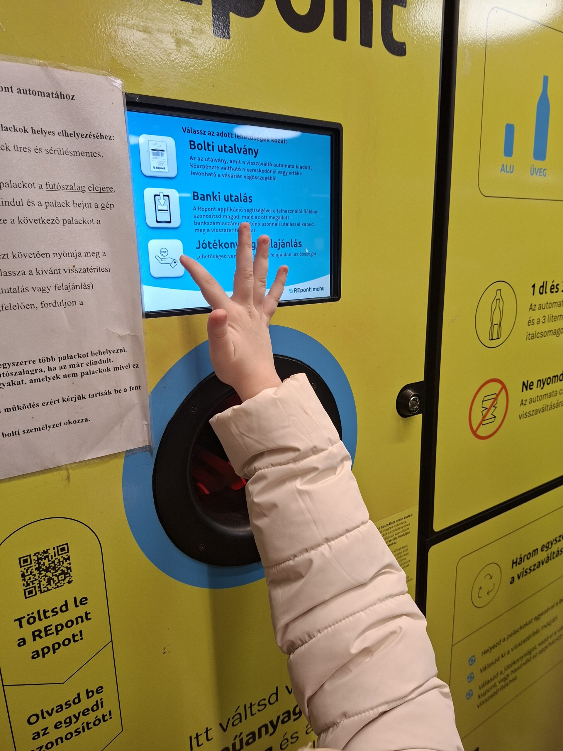 Közösen elsétáltunk a REpont/MOHU visszaváltó automatájához, és a gyerekek által hozott palackok árával támogattuk a MOSOLYRA VÁLTÓ programot.