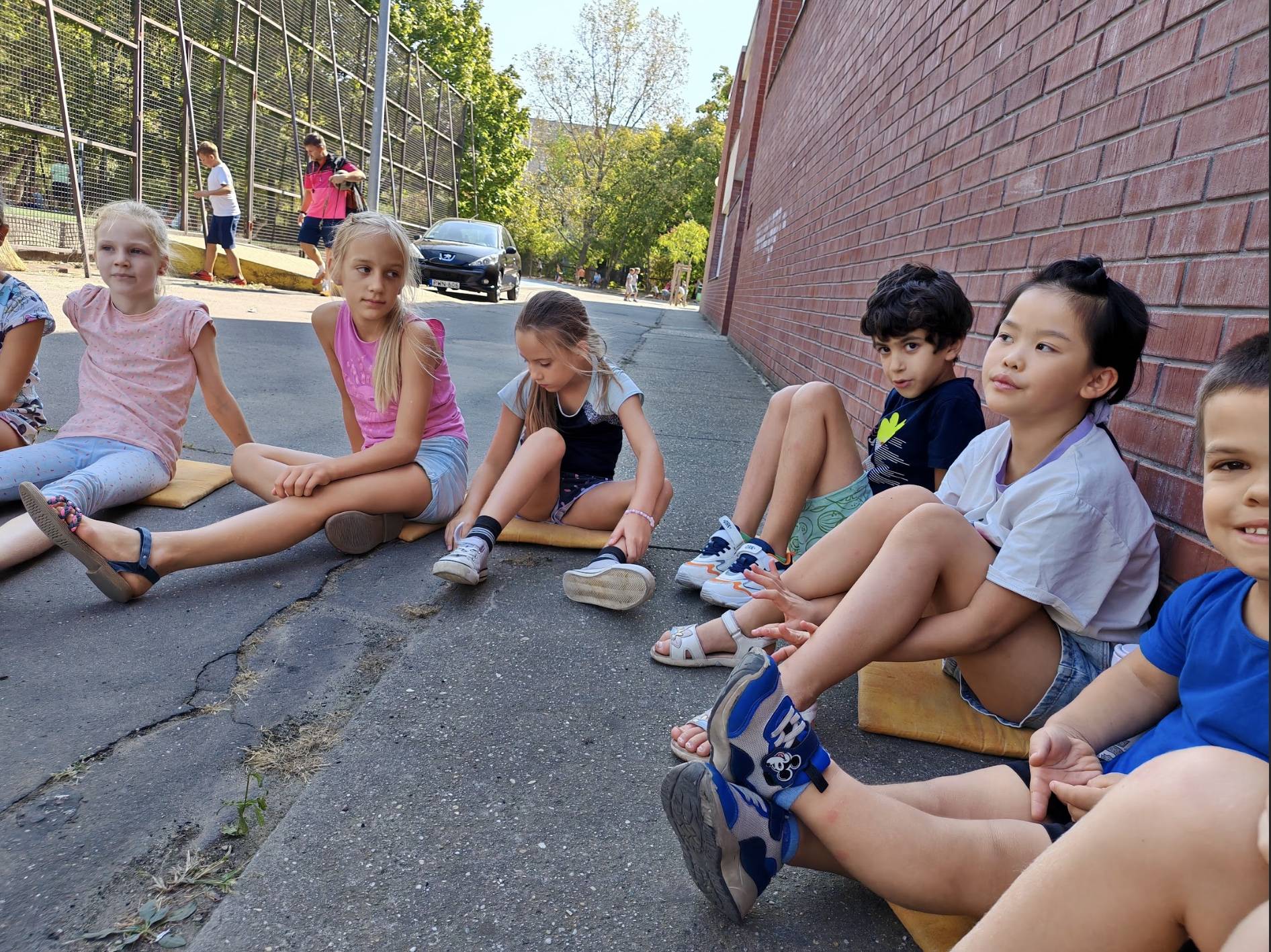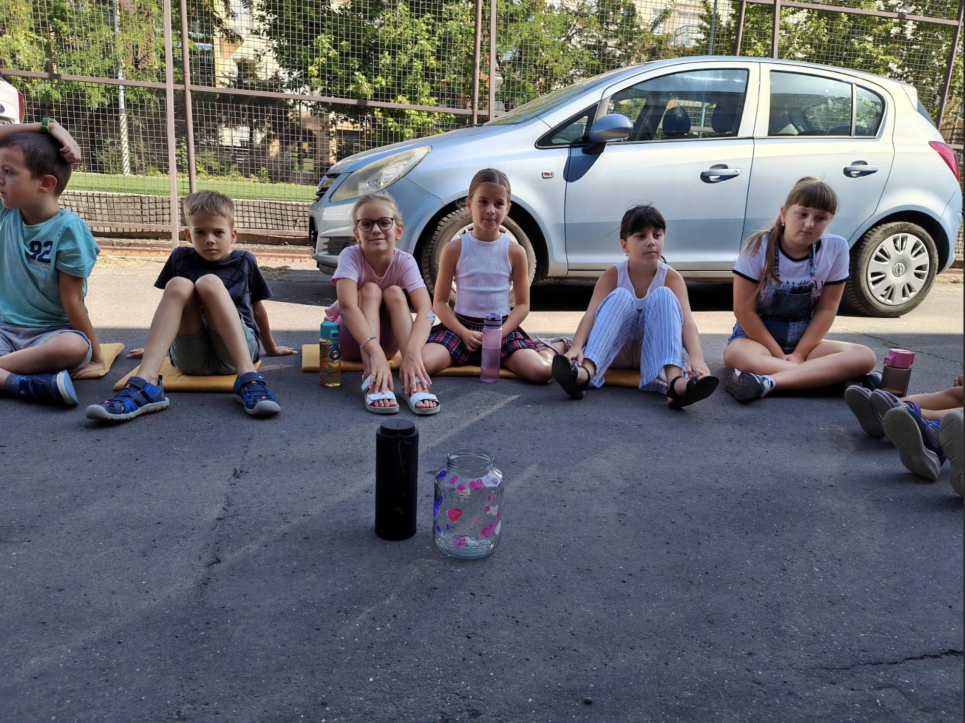 – Instrukció: A gyerekek leülnek a földre törökülésbe, majd mély lélegzetet vesznek.