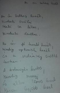 A kiállítás mellett verset is írtak a gyerekek, Ha én boldog lennék címmel. Nagyon büszke voltam rájuk!