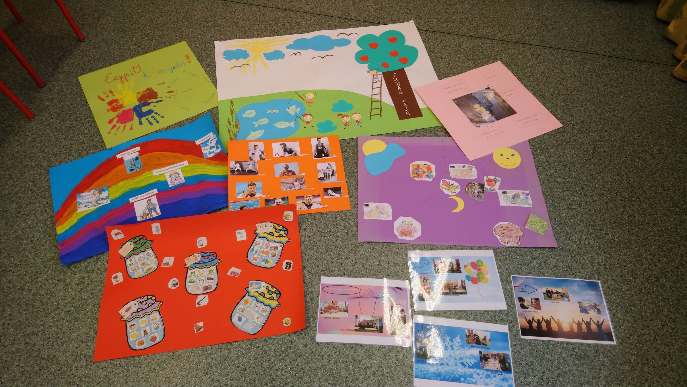 A kilenc hónap alatt az elkészített munkáinkból kiállítást készítettünk. Csatoltan küldjük a munkánkat.