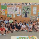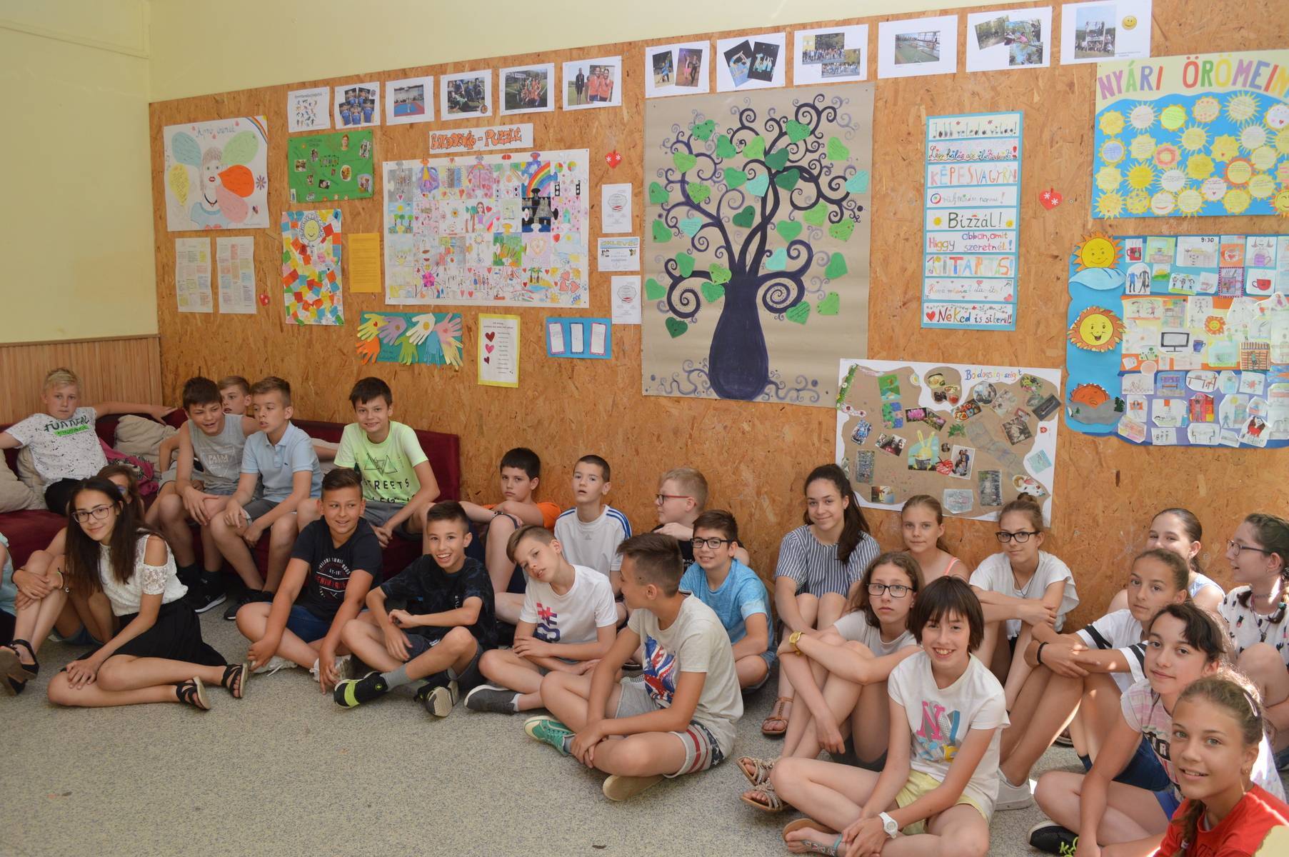 A tanév során folyamatosan gazdagodott osztálytermünk boldogság-fala, s az utolsó tanítási napon megnyitottuk kiállításunkat az egyes témakörökhöz készített alkotásokból.