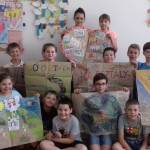 Örömmel vettük elő a tanév közösen elkészített munkáit. Sajnos helyszűke miatt néhányat már hazavittünk, így kiállításunk kissé hiányos lett.