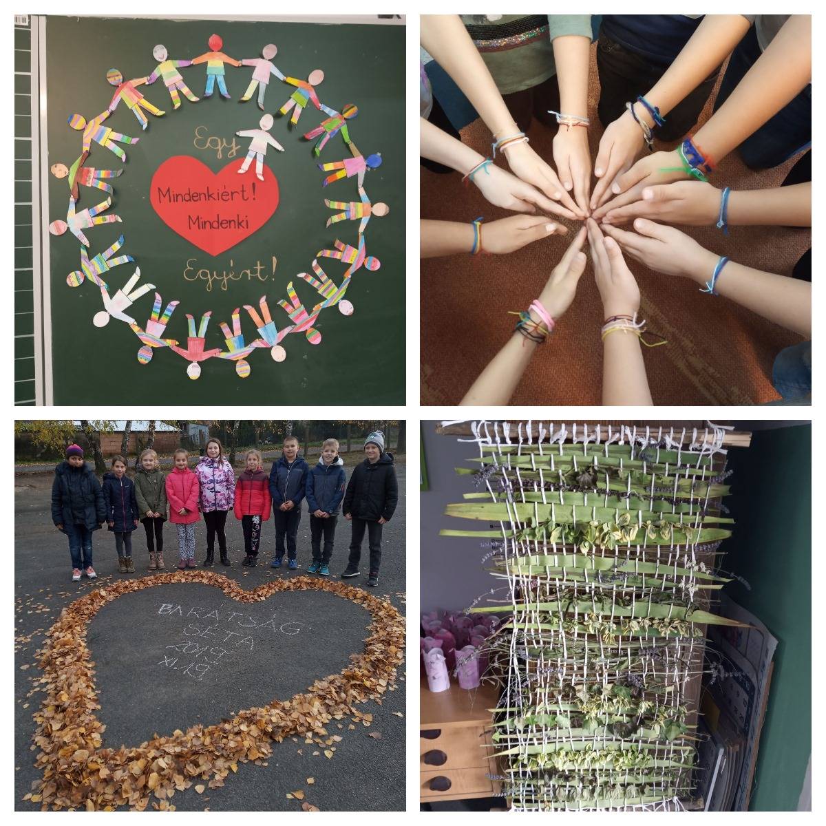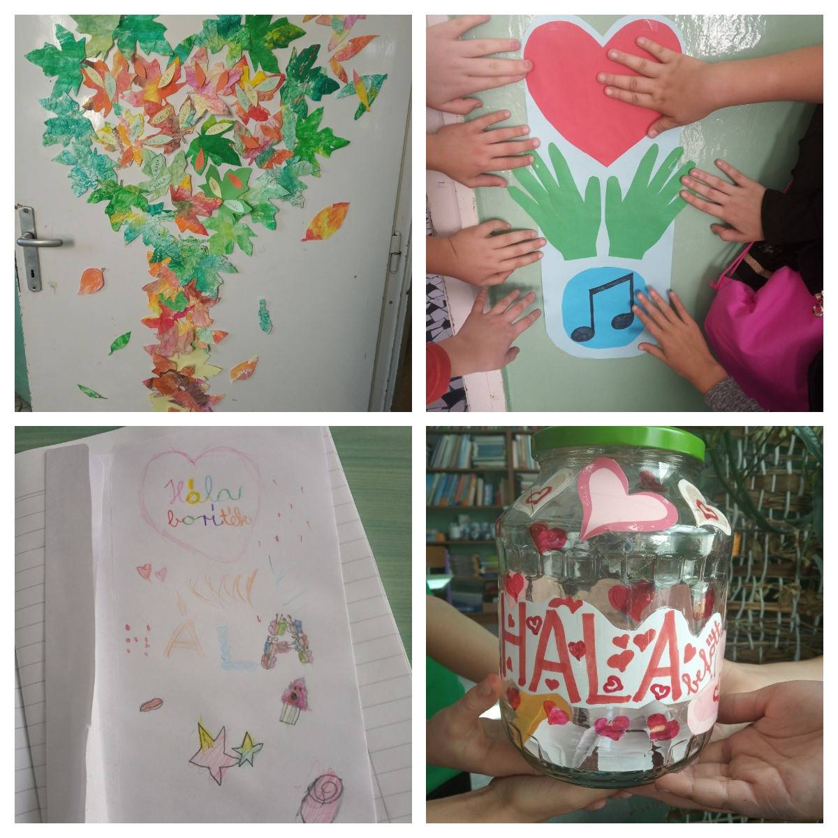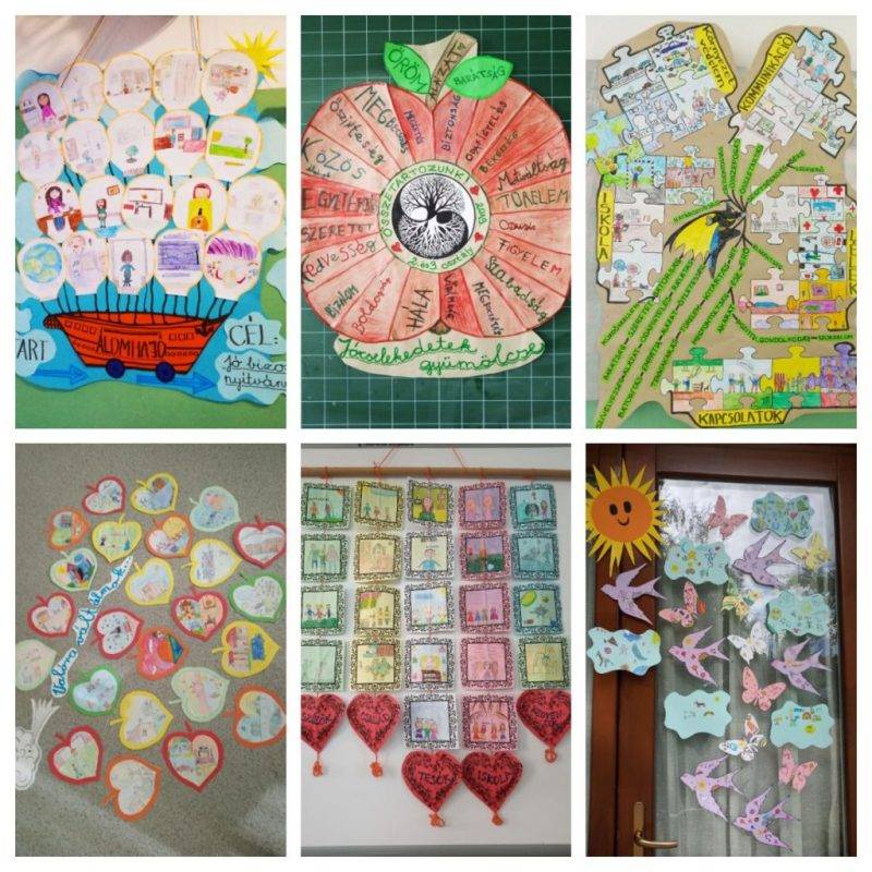 Június a fenntartható boldogság hónapja. A havi beadandó feladatnak a „Kiállítás” címűt választottam. A tanév során a boldogságórák keretében kis csoportjaimmal rengeteg dolgot alkottunk, sok feladatot megoldottunk a munkafüzet segítségével, sokat nevettünk, játszottunk, örültünk egymás sikereinek, megbeszéltük az „élet nagy dolgait”, segítettük egymást nehéz időszakokban. Megtanultunk kicsit relaxálni, elmélkedni, légzőgyakorlatokat végeztünk és a lazulás érdekében sokat énekeltük Bagdi Bella dalait is. A foglalkozások során számtalan képet készítettem a gyerekekről, a közös és egyéni alkotásokról. Az online kiállítást ezekből a képekből készítettem el montázsképek formájában, kiválogatva azokat, amelyek a legkedvesebb, legmegérintőbb élményeket, érzéseket idézték fel bennem.