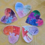 Ezután színezés, majd az erősségek felírása következett. Végül minden darab a helyére került. Az eredmény: színes, különleges, az osztályt is tökéletesen tükröző szívek születtek.