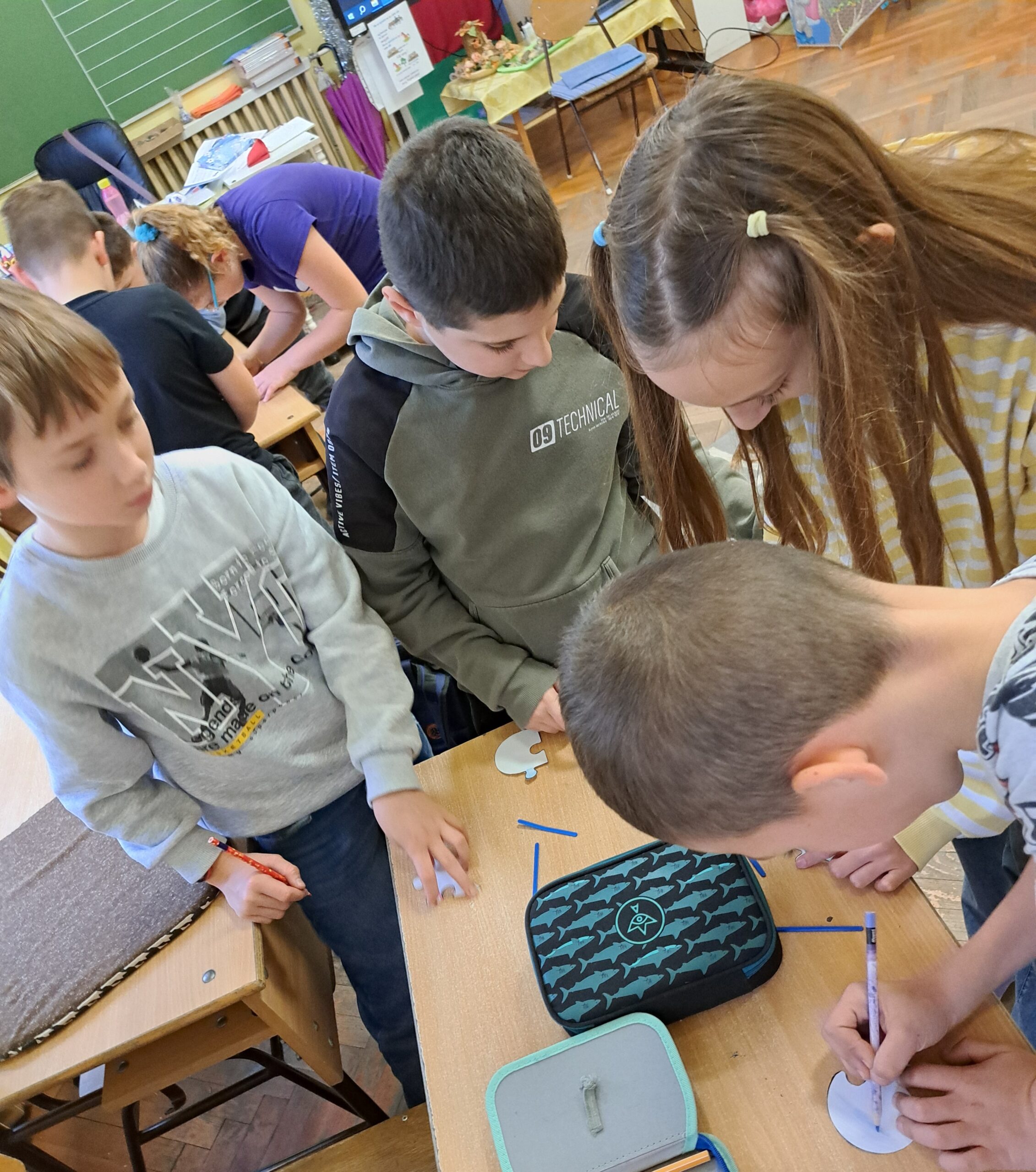 Színes pálcikák húzásával csoportokat alakítottak a gyerekek – a létszámnak megfelelően tettem a varázstasakunkba 5 féle színű pálcikát. Jó volt látni, ahogy örülnek egymásnak a csoporttagok.