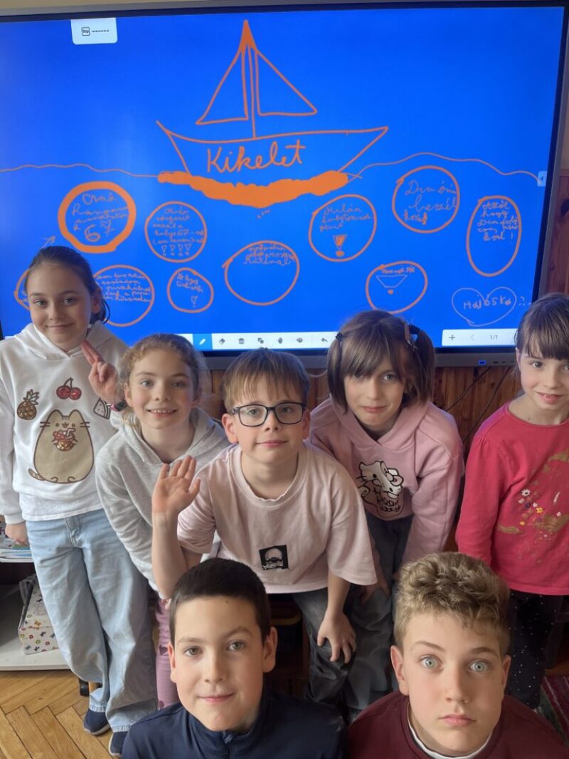 Az ebéd után lassan kihajóztunk, közben a Megbocsátás erősségmondókát kántáltuk halkan, majd ahogy közeledett a “Kikelet” vitorlásunk egyre hangosabban végül az interaktív táblán megjelent .