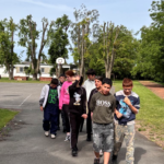 Májusban a boldogság témák közül olyat választottunk, amelyet a természetben tudtunk megvalósítani. Kincskereső sétára indultunk. A tanulók feladata az volt, hogy kincseket keressenek a séta során. Először csak tárgyakat kerestek. Például elvesztett cipőkanalat találtak. Aztán ráeszméltek arra, hogy mennyi csoda van a környezetünkben, és rá tudtak csodálkozni egy virágra, az állatok nyomaira, vagy a szántóföldi növények szépségére. Jó kis kirándulás kerekedett belőle.