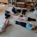 Ráhangolódás (Relaxáció): Foglalkozásunkat Bagdy Emőke ajánlása alapján egy rövid, csendes relaxációval kezdtük. A gyerekek becsukott szemmel, a légzésükre figyelve „befogadták a napsütést és a nyugalmat” a szívükbe.