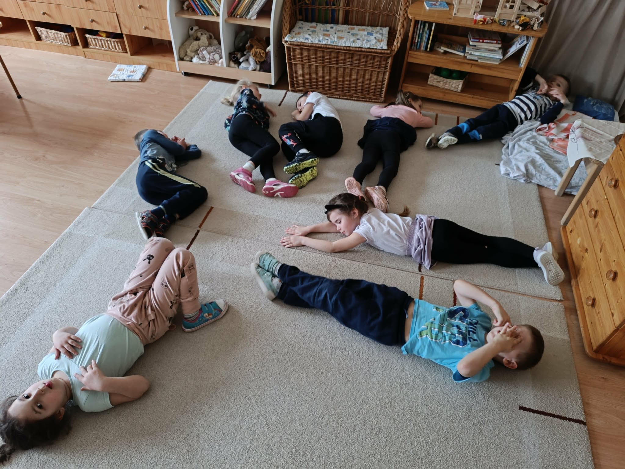 Ráhangolódás (Relaxáció): Foglalkozásunkat Bagdy Emőke ajánlása alapján egy rövid, csendes relaxációval kezdtük. A gyerekek becsukott szemmel, a légzésükre figyelve „befogadták a napsütést és a nyugalmat” a szívükbe.