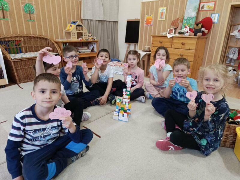 Alkotómunka – „Szívküldi” meglepetés: A gyerekek szívecske alakú kartonokra rajzolták le egy-egy választott „meglepetés örömüket”. Ők dönthették el, hogy a rajzot kinek szánják: egy óvodai barátjuknak vagy a családtagjaiknak. Elrejthették annak zsebébe, kabátjába stb.