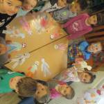 Az előre kivágott babákat a kedvenc színeikkel színezték ki. Miután elkészültek, megkérdeztük őket egyenként, hogy kinek a kezét fognák meg legszívesebben. Így álltak sorba egymás mellé, összeérintve a babák kezeit. Az eredmény nem okozott meglepetést, szinte mindenkinél biztosan tudtuk, hogy kit kedvel a legjobban. Szép dekorációja lesz óvodánknak ez a projektmunka.