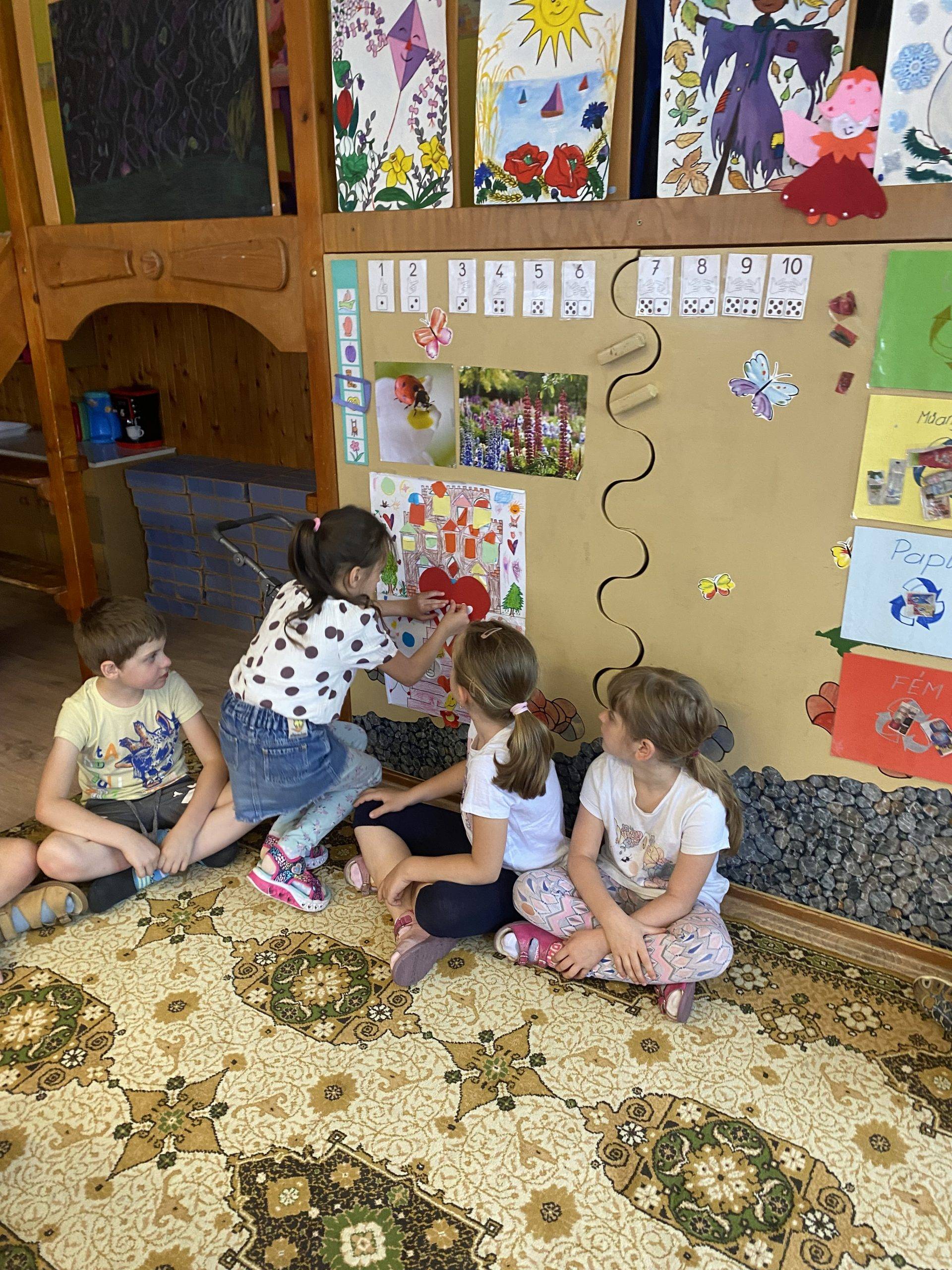 Június hónapban is nagyon jól érezték magukat a kis pillangó csoportosok minden egyes boldogságórával töltött percben. Felelevenítettük az év hónapjaiban, hogy milyen lépcsőfokokon keresztül értük el a boldogságvár kapuját. Mindenki feltette a boldogságvárra a jelét megkérdeztem, hogy ki az aki nem érzi úgy, hogy beléphet a boldogság várba, de mindenki úgy érezte, hogy nagyon boldog. Nagyon ügyesen sorolták a gyerekek Boldog Dórával. Nagyon örültek, hogy kinyílt a boldogság vár kapuja. Sokat énekeltünk, táncoltunk, hallgattuk Bagdi Bella dalait. Rendeztünk boldogság futást. Meghallgatták a gyerekek Bezzeg Andrea Boldog erdő-Kerek erdő című meséjét. Újra kinyitottuk a hálabefőttet, a gyerekek szívesen hallgatták, hogy szeptemberben miért voltak hálásak, megbeszéltük, hogy most miért hálásak, hogy a hála a szívükben azóta is ugyanúgy él.