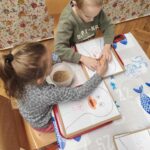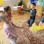 A gyerekek színes kendőkkel mozogtak, egymásnak adták és dobták, majd a foglalkozás végén megölelték egymást. Ez erősítette a kapcsolatokat, a bizalmat és az egymás felé irányuló pozitív érzelmeket. A mozgásos játék során az alábbi énekeket énekeltük: Színes kendő, Süssünk, süssünk valamit.