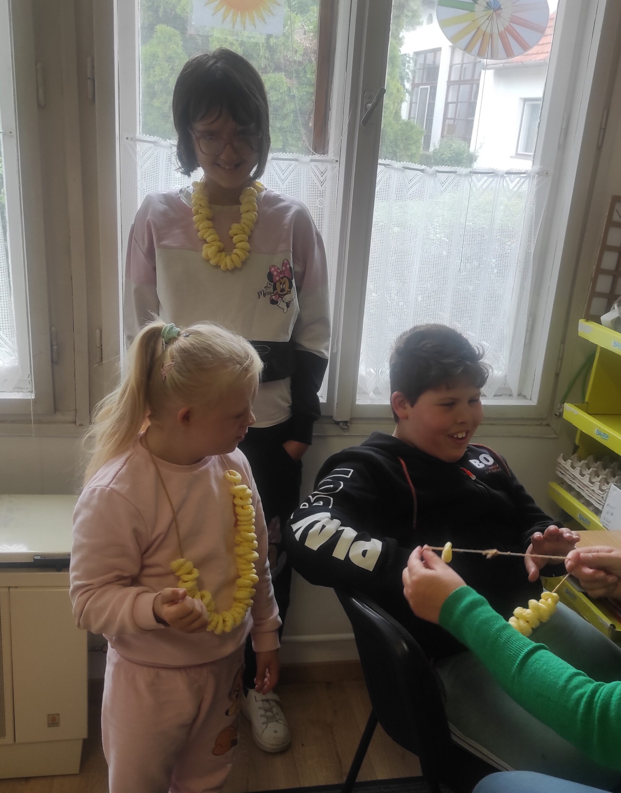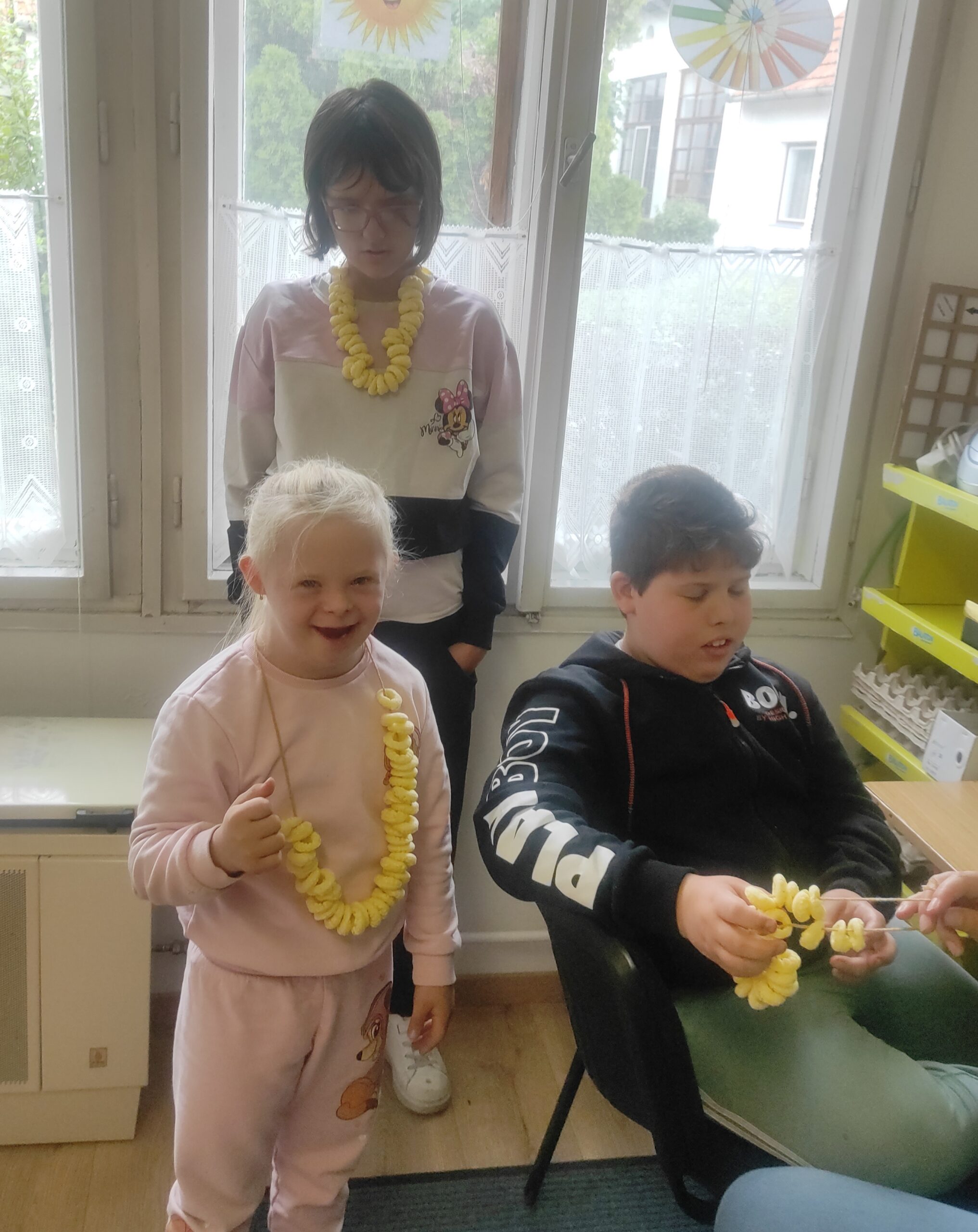 Hálanyakláncot fűztek a foglalkoztató csoport tanulói. Ajándékba adhatták annak a felnőttnek, vagy gyermeknek, aki leginkább kedves a számukra, kifejezve hálájukat a kedvességért, gondoskodásért, barátságért.
