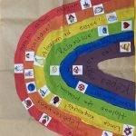 A másik megküzdéseinket ábrázoló tevékenység a szivárvány festése, amelyben a színek által rávezettük a gyerekeket, a különféle nehézségű akadályokra. Minden színhez kapcsoltunk egy-egy stratégiát, amelyhez a csoport minden kis pajtásának a tulajdonságait figyelembe véve úgy csoportosítottuk őket, hogy eddig milyen sérelmekkel, megpróbáltatásokkal találkoztak, és hogy végül mennyire lesznek boldog a megküzdéseik által.