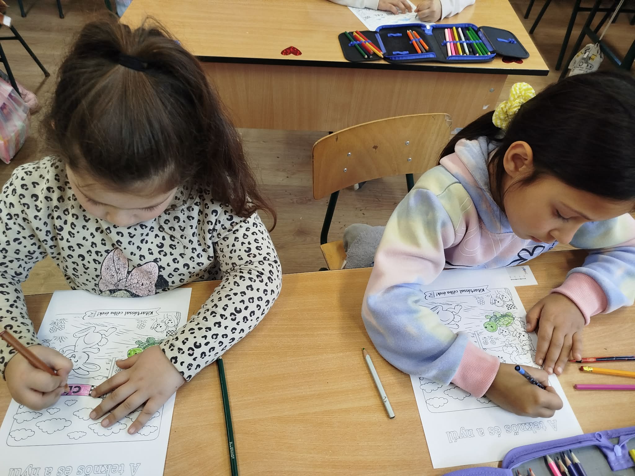 A következő alkalommal a harmadikos gyermekek a mese inspirációjára saját „cél-lépcsőt” készítettek. Ez egy vizuális segédlet volt, amelyen végiggondolták, miben ügyesek már, és mit szeretnének még gyakorolni. Így nemcsak elméletben, hanem konkrétan saját életükre vetítve is foglalkoztak a célokkal. A kisebbek közben színezővel dolgoztak, amely szintén a mese és a célok témájához kapcsolódott – így mindenki korának megfelelő, kreatív feladatot kapott.