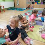 Bagdi Bella zenéjére a szőnyegen relaxáltunk. Jó volt az izmok megmozgatása, az ellazulás.