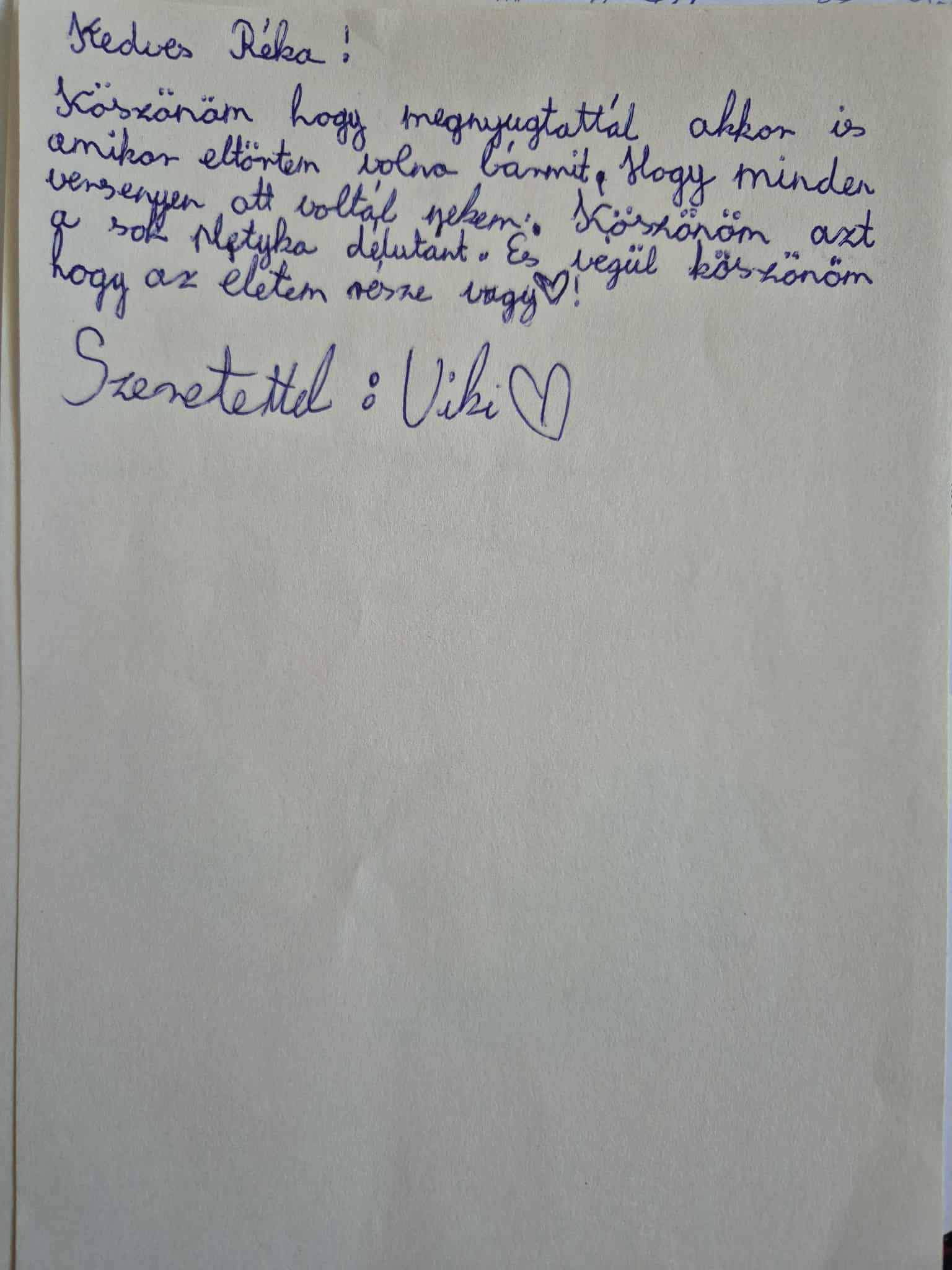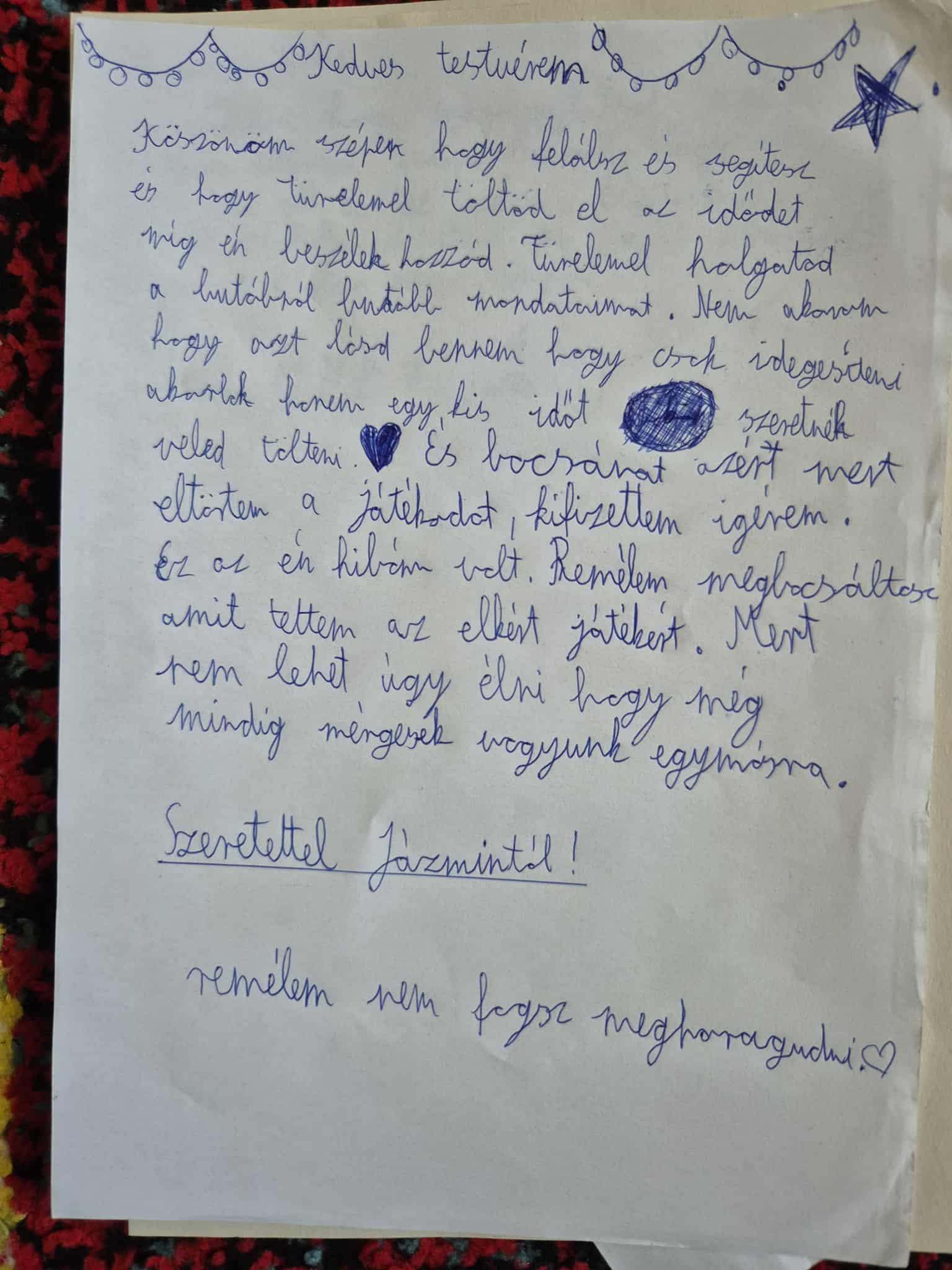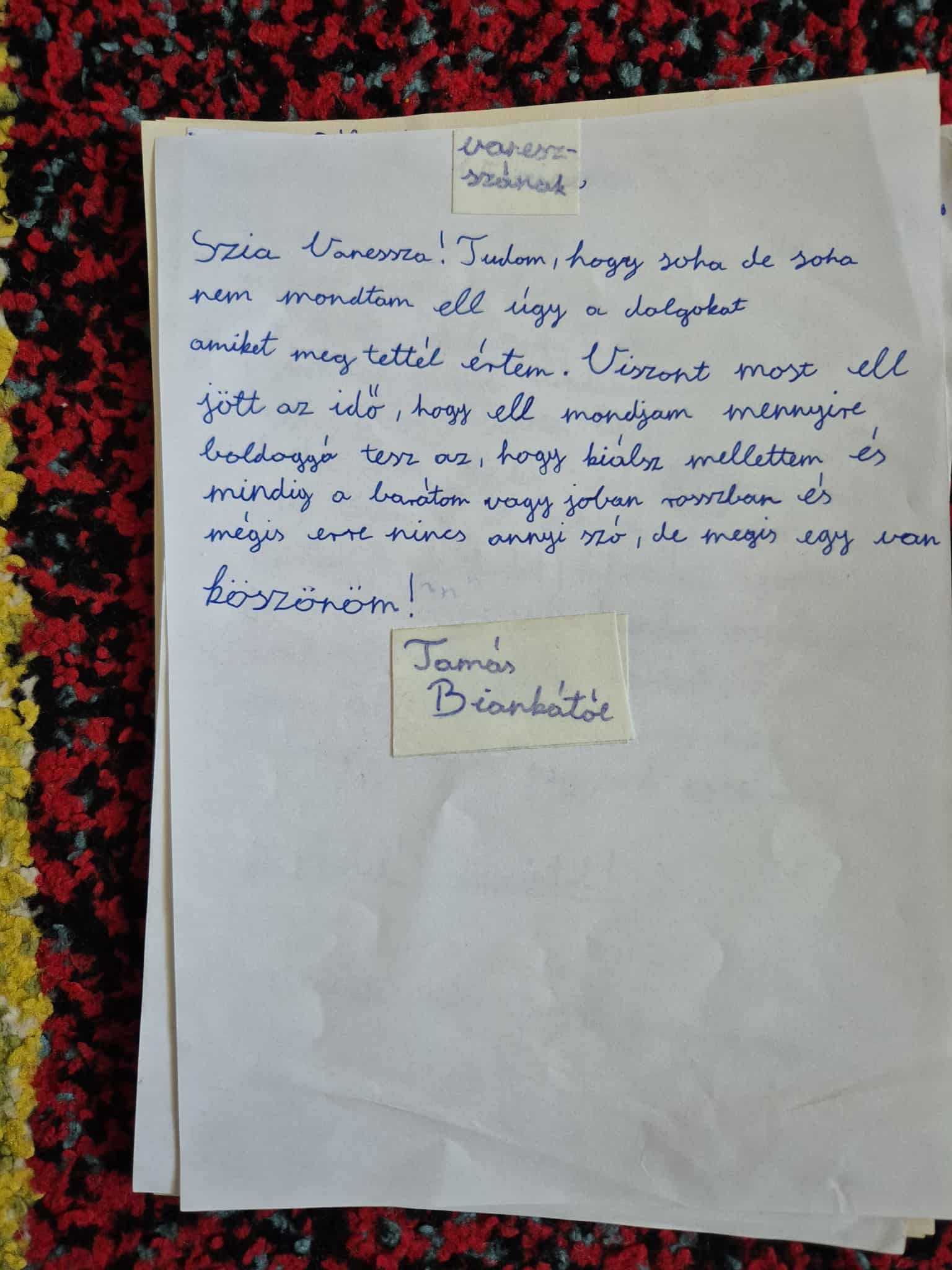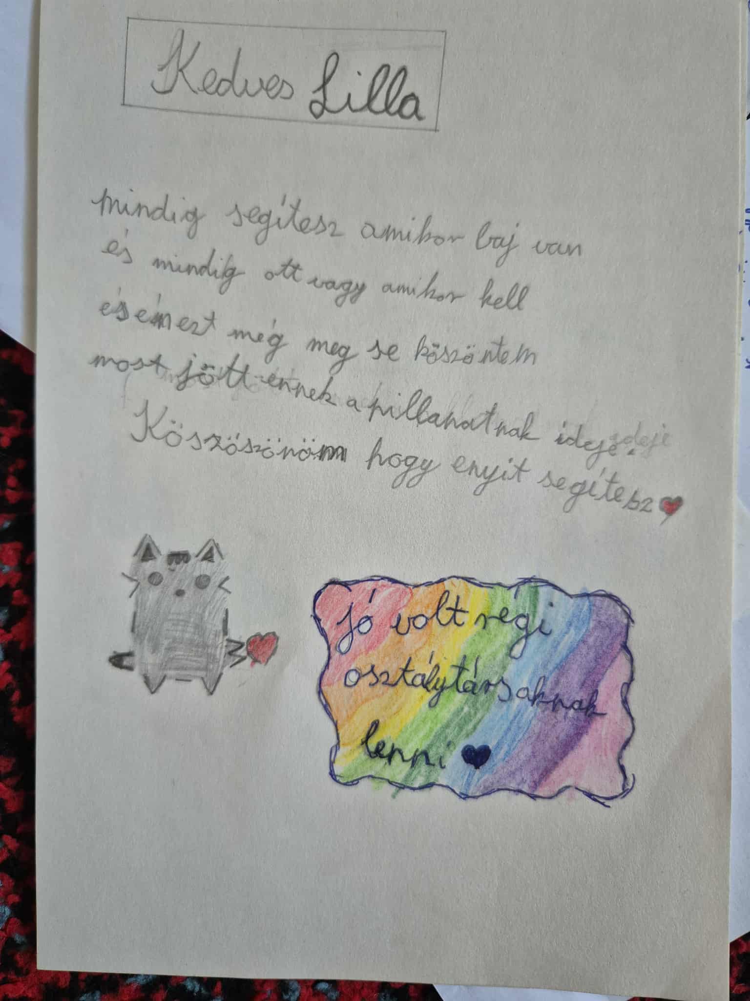 A szeptemberi kiírásnak megfelelően a gyerekek levélben fogalmazták meg köszönetüket barátaiknak, osztálytársaiknak, testvérüknek, szüleiknek, esetleg felnőtt példaképeiknek. Valami olyant köszöntek meg, amit a hétköznapok forgatagában magától értetődőnek, természetesnek vennének. A feladat arra ösztönözte őket, hogy egy pillanatra álljanak meg, lépjenek ki a hétköznapi mókuskerékből, gondolkozzanak el mindazokon a javakon, ami az életük részét képezi. Egyeseknek könnyen ment, mások sajnos megszenvedtek vele. Elgondolkodtató volt felismerni számukra, hogy ritkán köszönnek meg bármit is szeretteiknek.