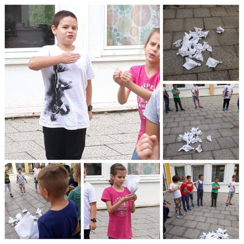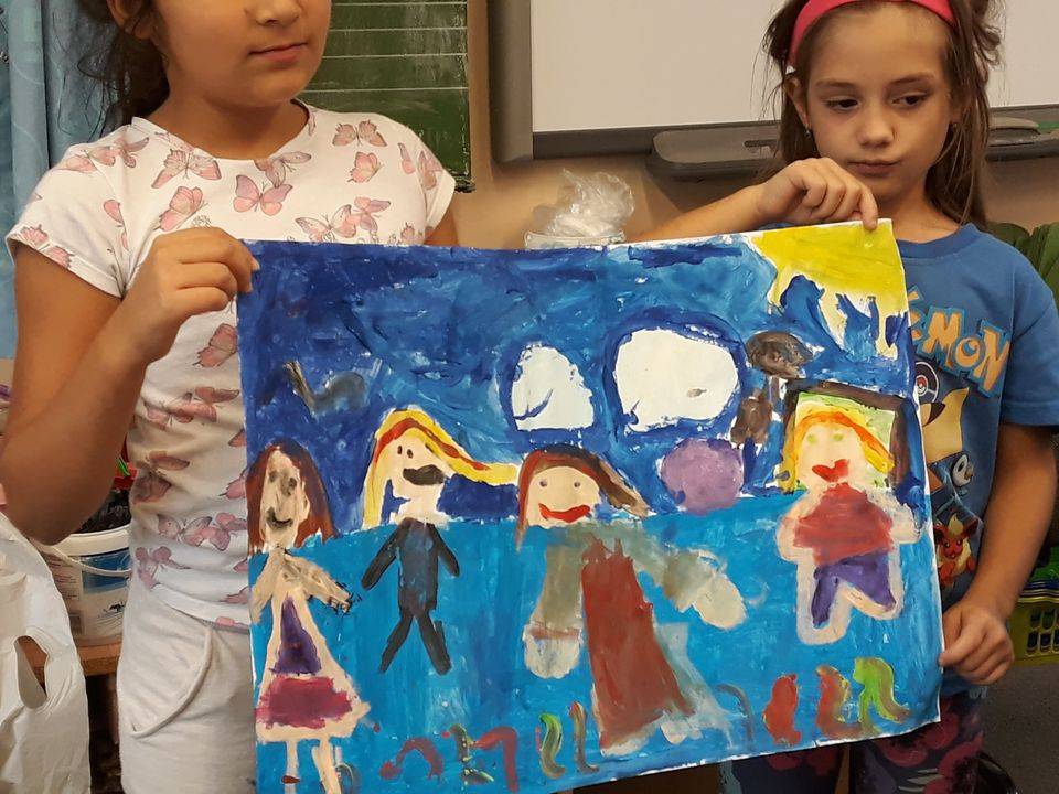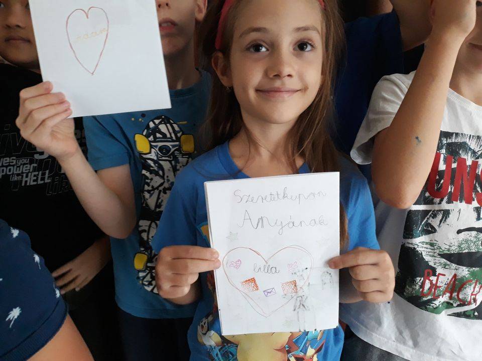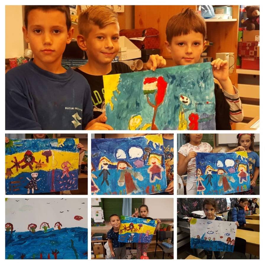 Augusztus 31-én, életünk első bizonyítványosztásán nagyon örültünk, hogy hosszú idő után újra viszontláthatjuk egymást. Hálásak voltunk érte. Aztán elkezdődtek a dolgos hétköznapok, amiket ünnepnapokká varázsoltunk és értékeltük, hogy ismét együtt lehetünk. Hálából elkészítettük a hálabatyuinkat, amikkel gazdagabbak lettünk. Izgatottan és örömmel osztottuk meg egymással a kis batyuk „titkait”. Sokat beszélgettünk a nyári élményeinkről, kivel milyen jó dolgok történtek. Ezeket a fantasztikus eseményeket csoportmunkával meg is festettük. Nagyon ügyes alkotások sikerültek. Szüleinknek Szeretet kuponokat készítettünk. Köszönet a Szeptembernek……………….
