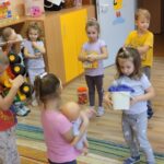 Beszélgető körben a háláról társalogtunk és örültünk annak, hogy együtt lehetünk. Ez után mindenki választott egy kedves játékot, amit körbe rajtunk. Kimentünk az öltözőbe és visszatérve egy szívecske formában találtuk a választott játékokat. Miért lehetett ez a forma? Boldogan találgattuk, miközben körbe jártuk é vidáman birtokba vehettük. Elmesélték a gyerekek kinek miért kedves a játéka.