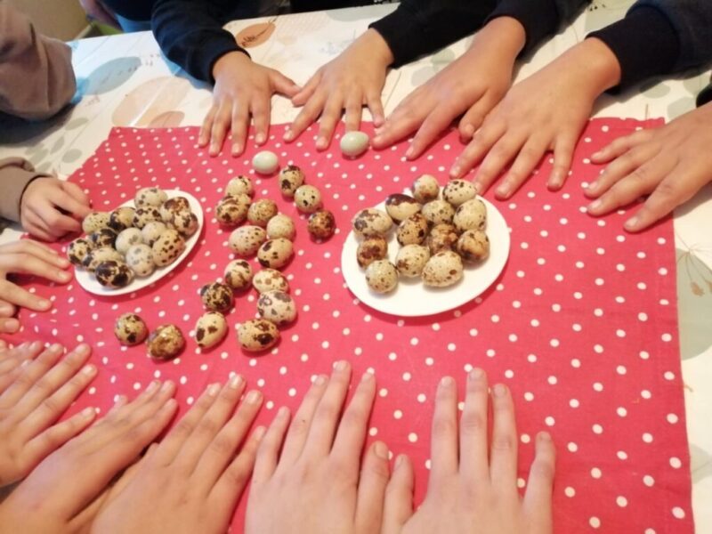 Enikő néni érkezett hozzánk, aki sok éve fürjeket tenyészt, és mesélt a fürjek életmódjáról, táplálkozásáról, növekedéséről, szokásairól. Mindenki megsimogatta a kis fürj madarat, majd kötényt kötöttünk, és az ajándékba kapott fürjtojásokból, tükörtojásokat készítettünk, és kóstoltak a gyerekek. Mindenki ügyesen segített a kiflik szeletelésében, és a tojások feltörésében. Az ízletes közös lakoma után gyerekek vihettek haza 1-1 fürjtojást mutatóba is, és többen eltervezték, hogy kiköltetik a piciny tojást, hogy legyen saját fürj madaruk.