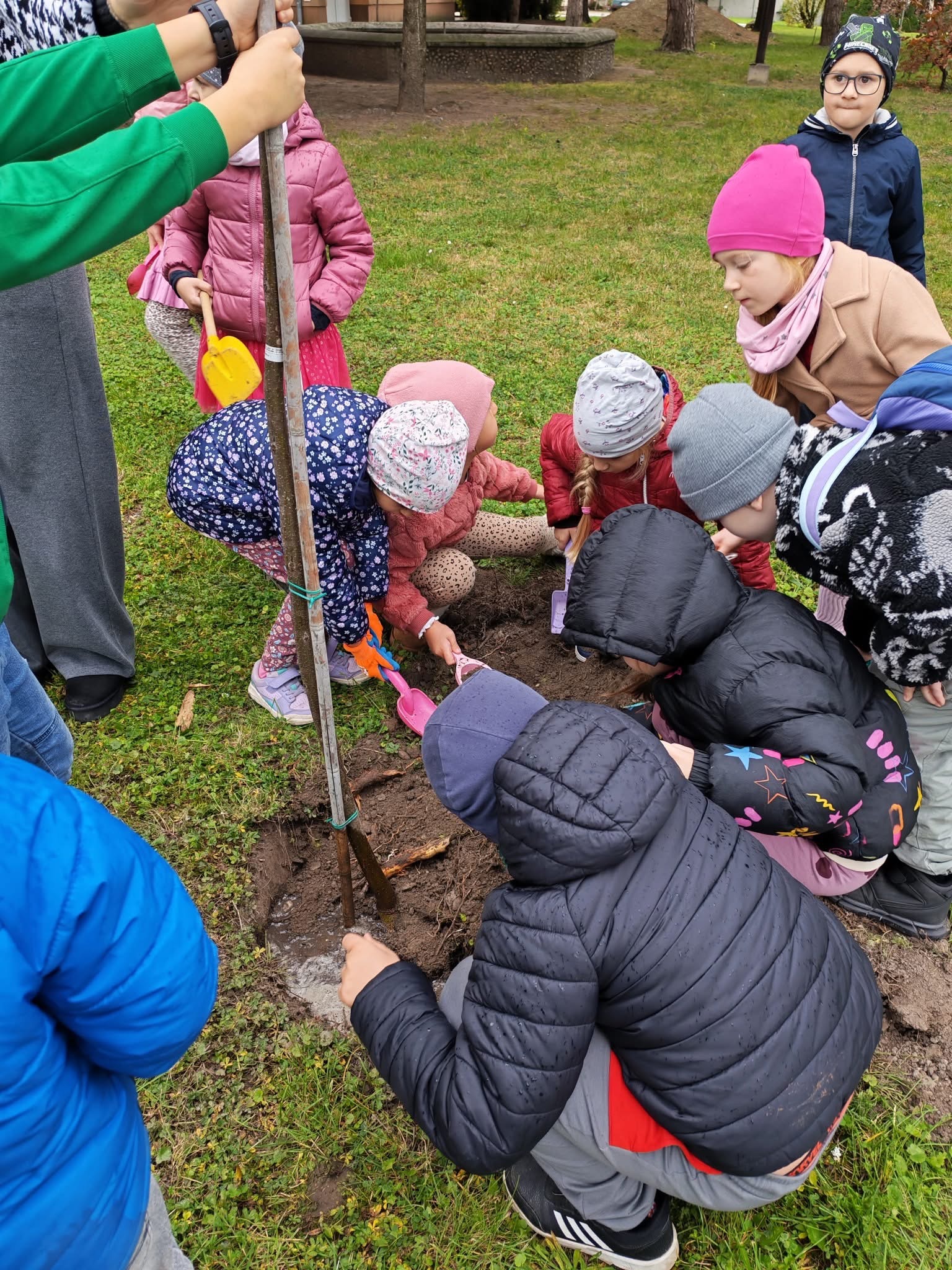 A legkisebbek az optimizmust a növekedés és az új kezdetek örömével kapcsolták össze: elültettek egy fát, amely a reményt, a kitartást és a „mindenből lehet valami szép” gondolatát jelképezi. A gyerekek nagy lelkesedéssel segítettek a munkában, és megígérték, hogy gondoskodnak majd róla, ahogy a saját jókedvükről is.